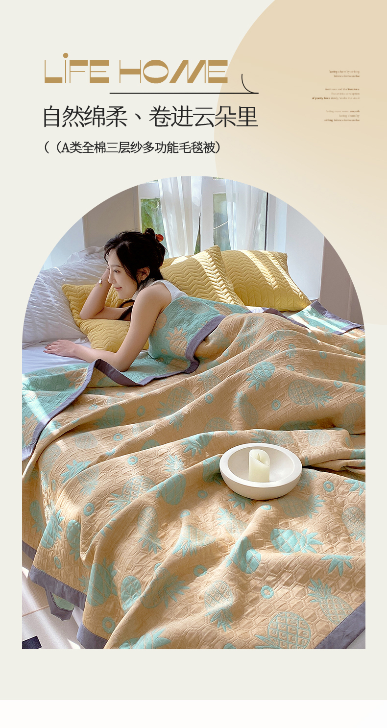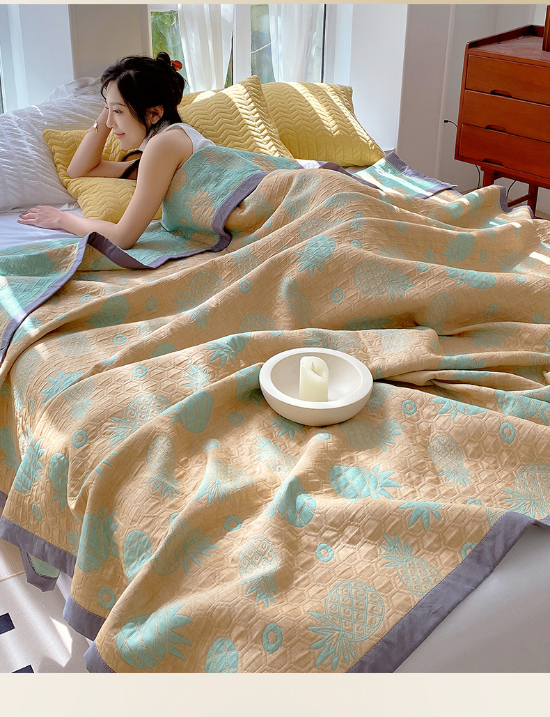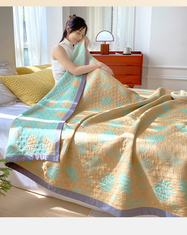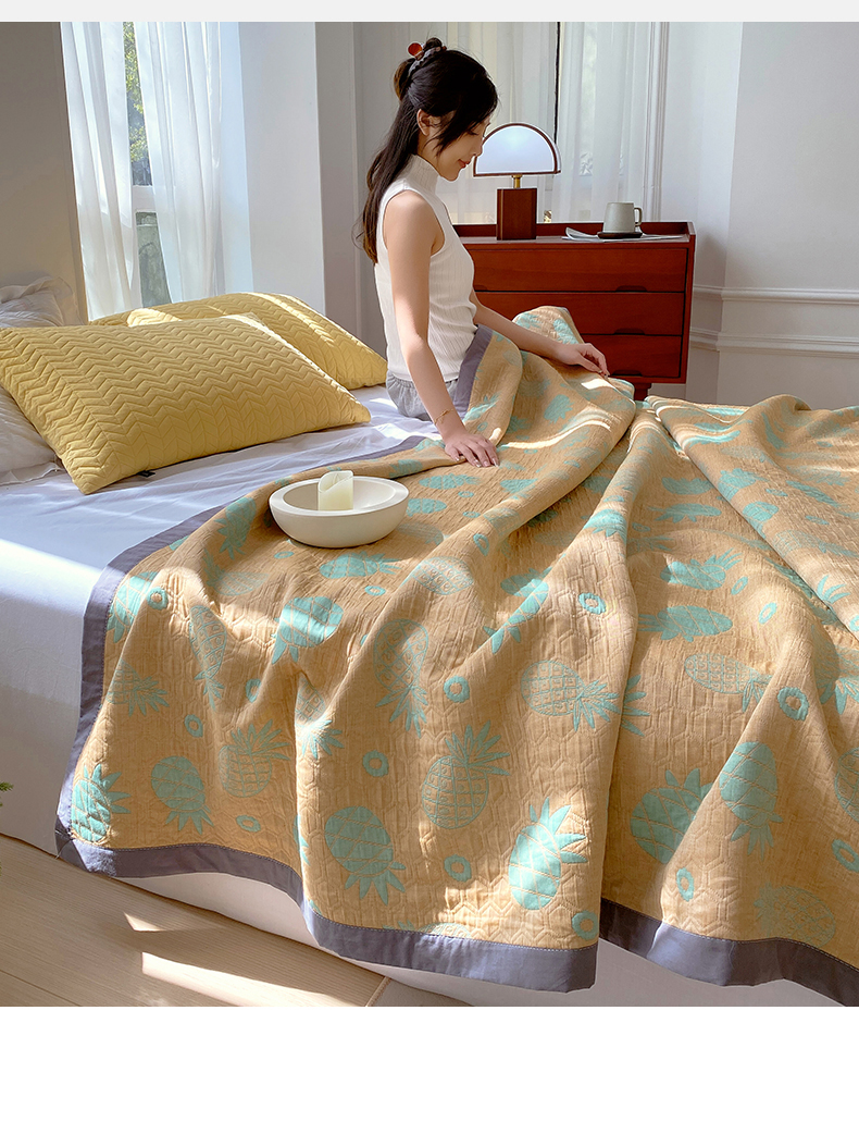 商品名称:兄弟坊 2026新款A类全棉三层纱多功能毛巾被夏被夏凉被(盖毯床单夏被) 菠萝气泡-黄