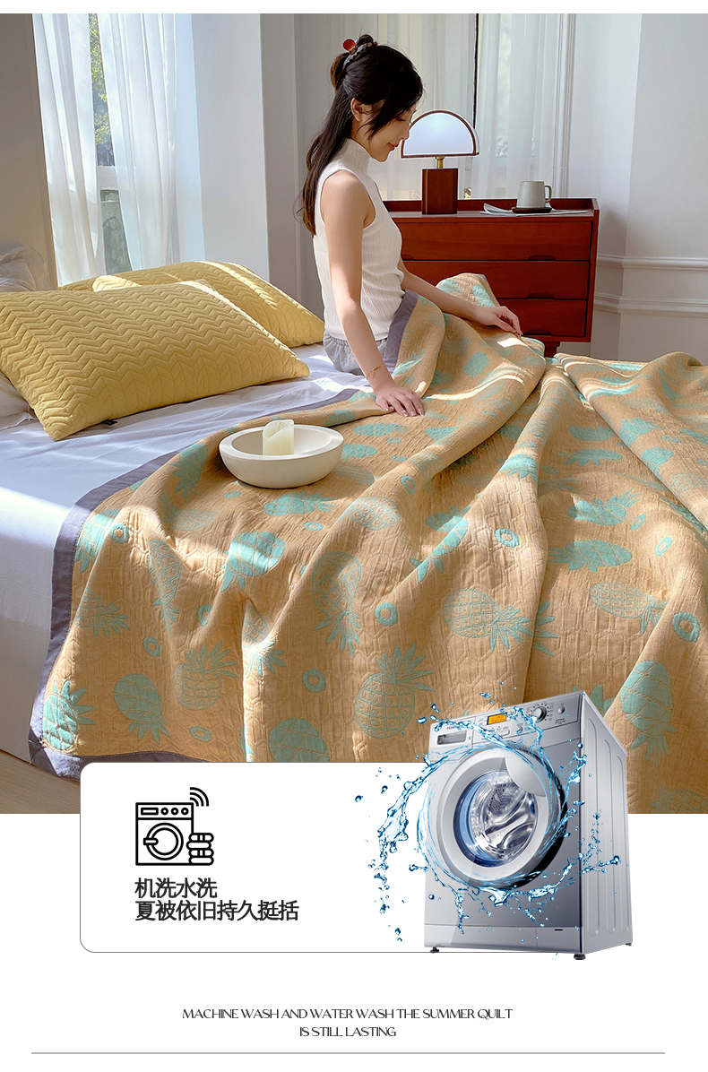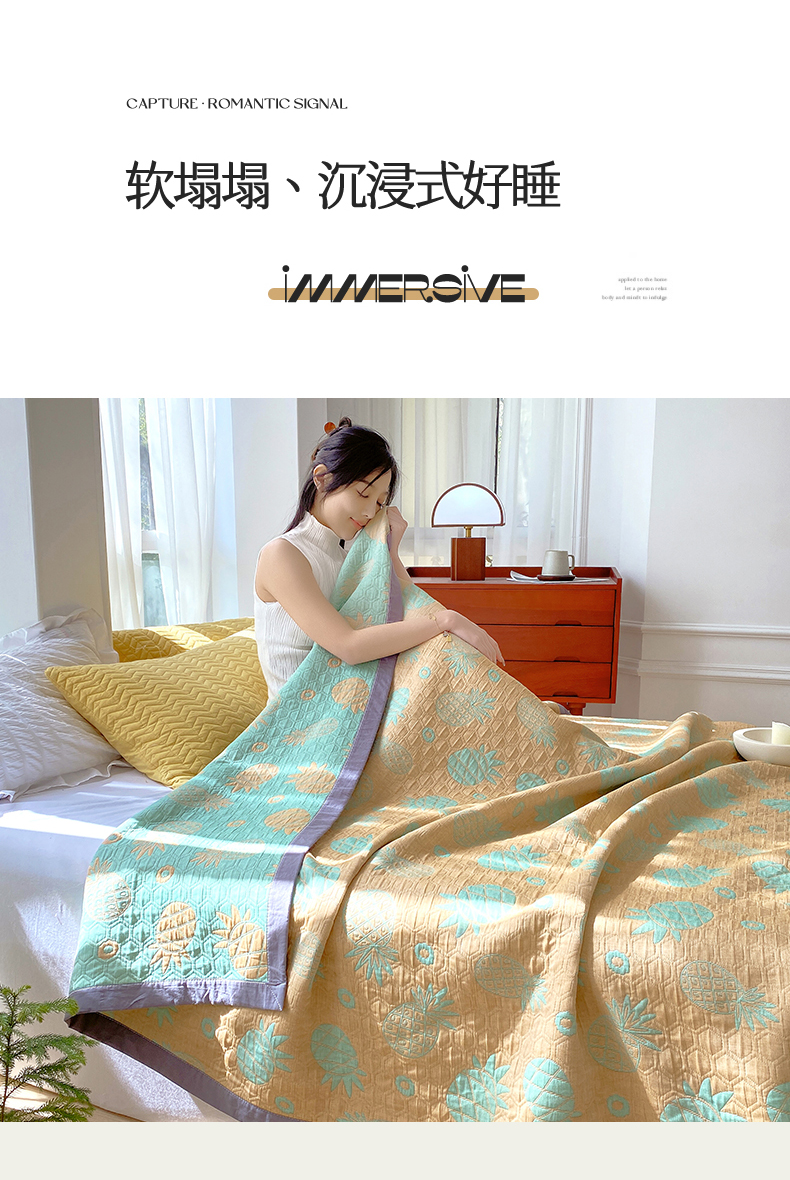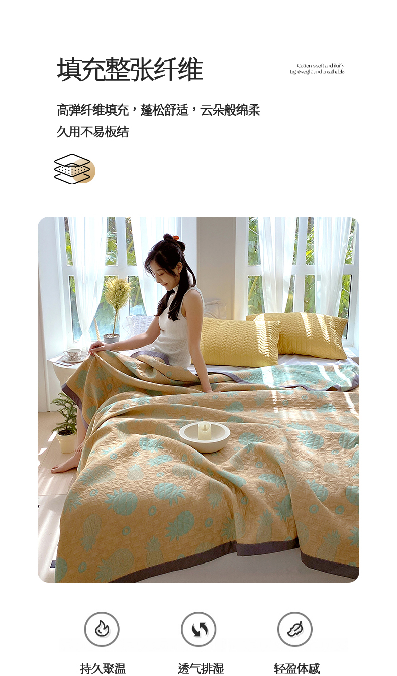 商品名称:兄弟坊 2026新款A类全棉三层纱多功能毛巾被夏被夏凉被(盖毯床单夏被) 菠萝气泡-黄