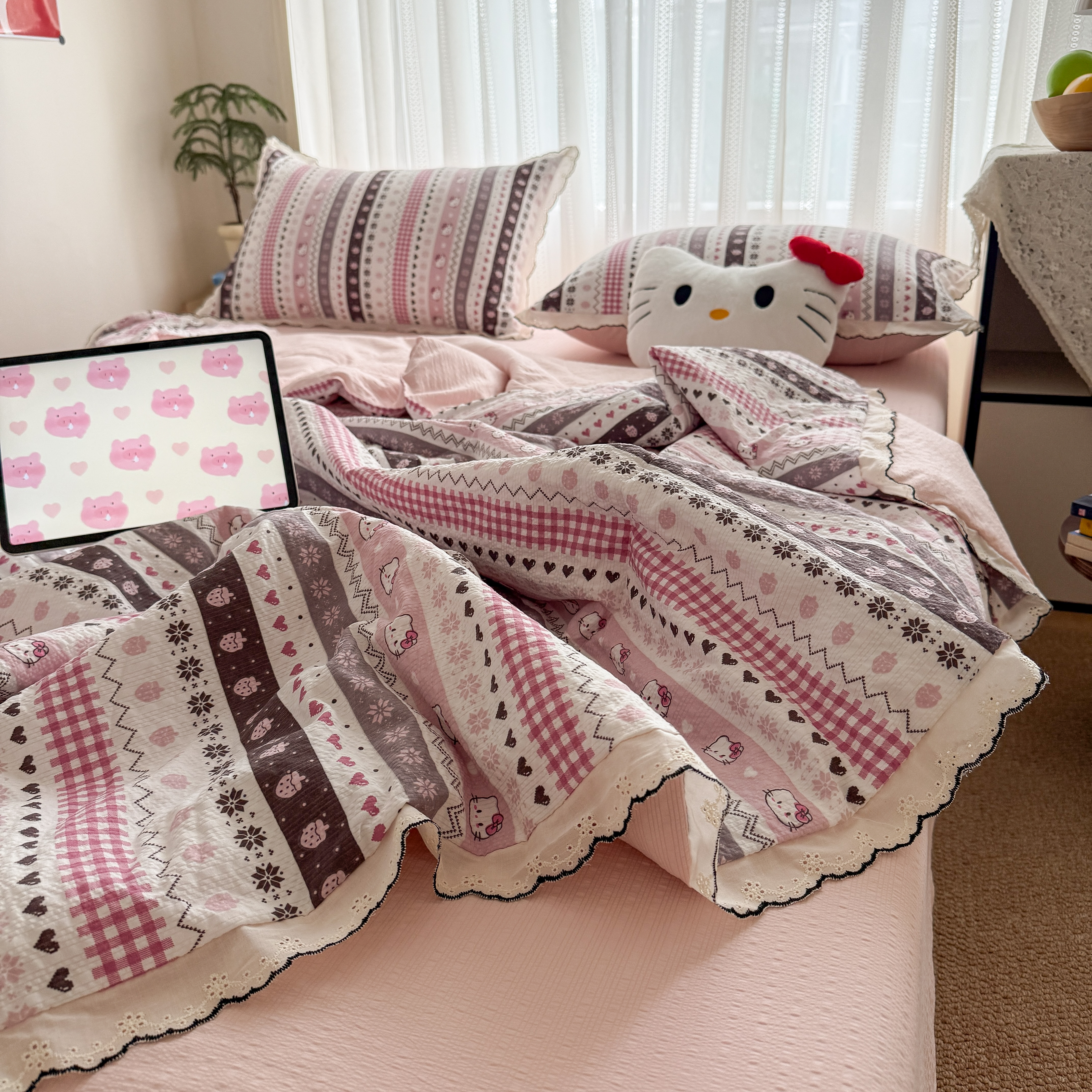 (总)2026新款泡芙纱花边四件套,人间草木,春和,梨花落,梦境,咖啡小猫,暖心,木马,星愿,摇摇马,小女孩,咖豹纹,咖爱心,灰樱桃,碟舞,紫爱心,紫苏,紫豹纹,绿色心情,花束