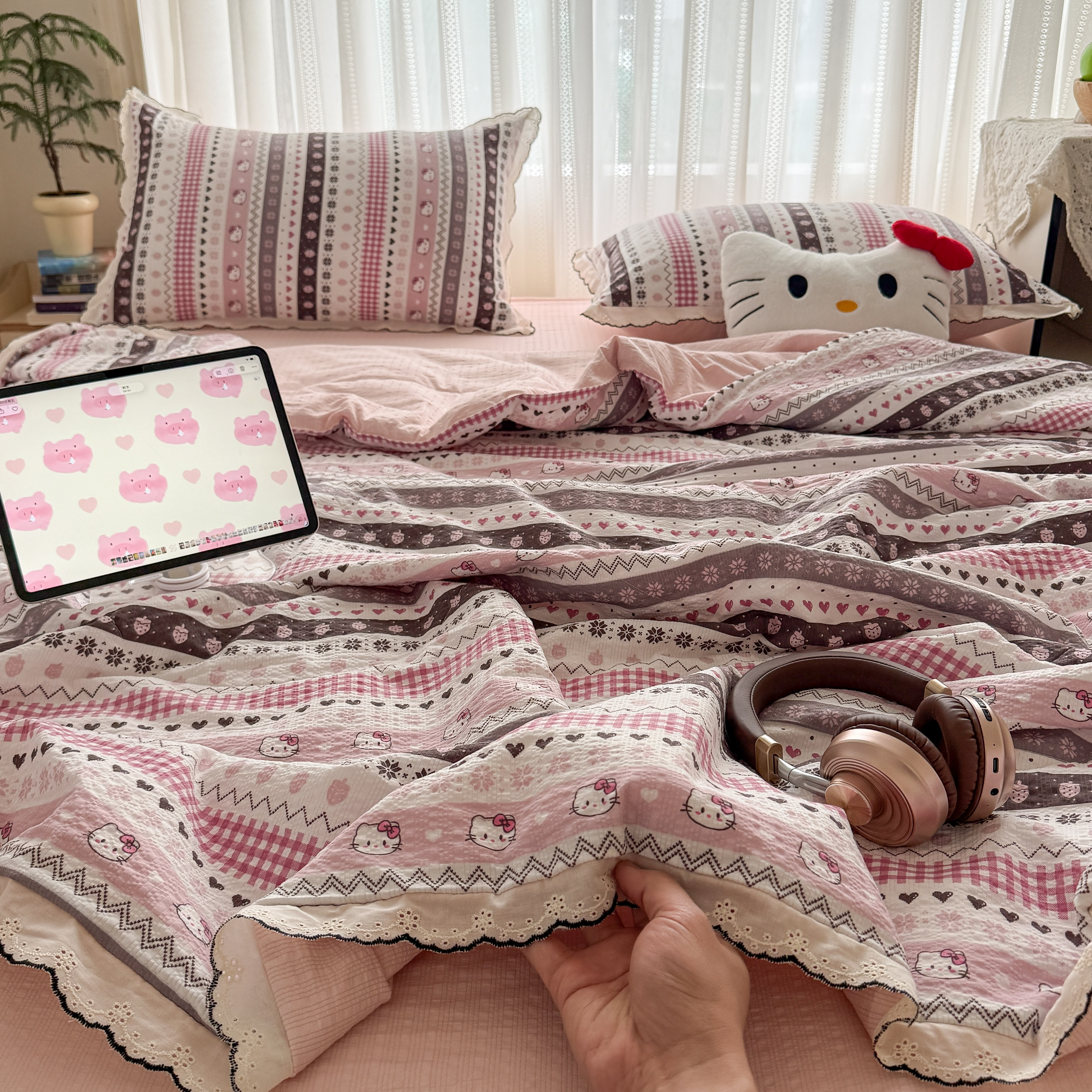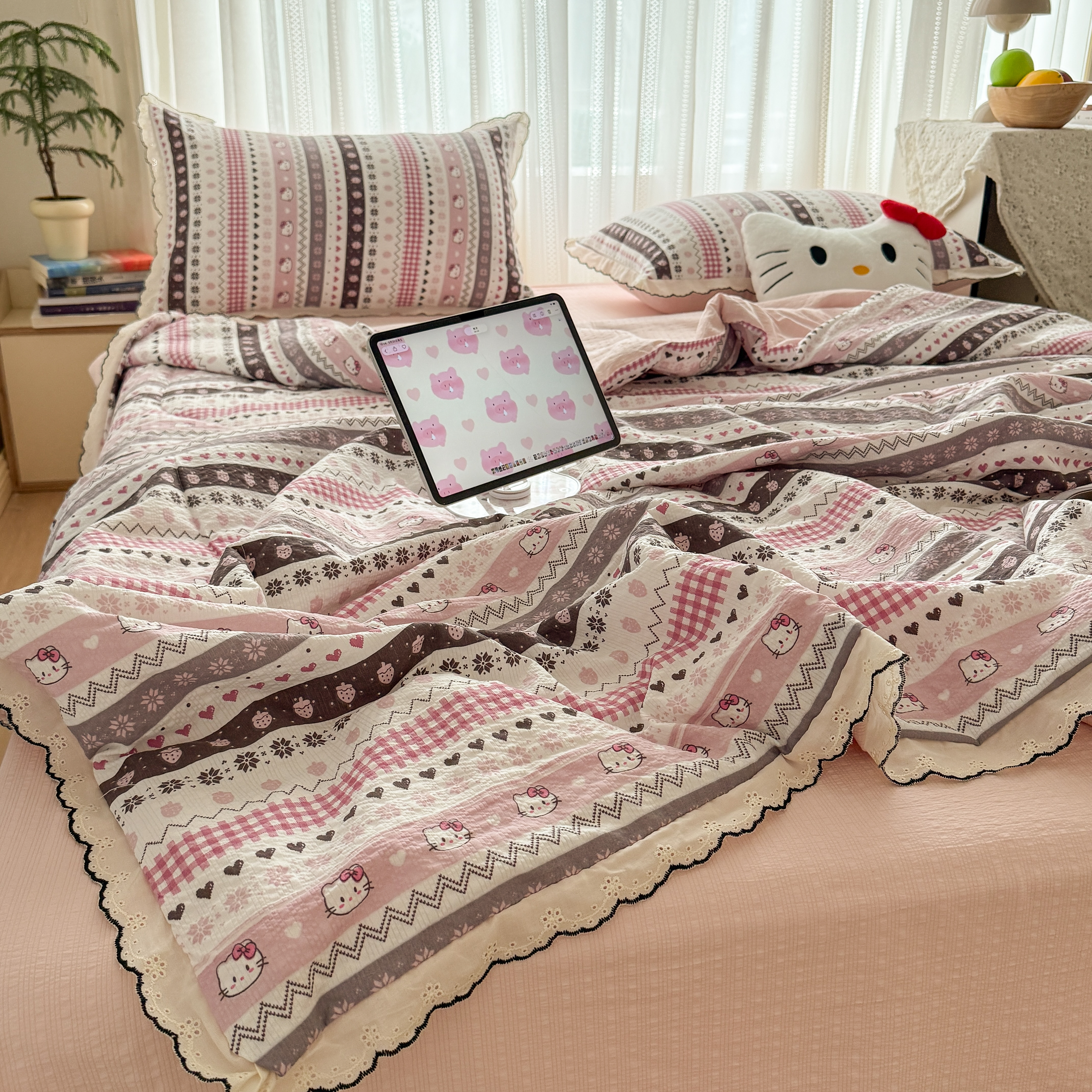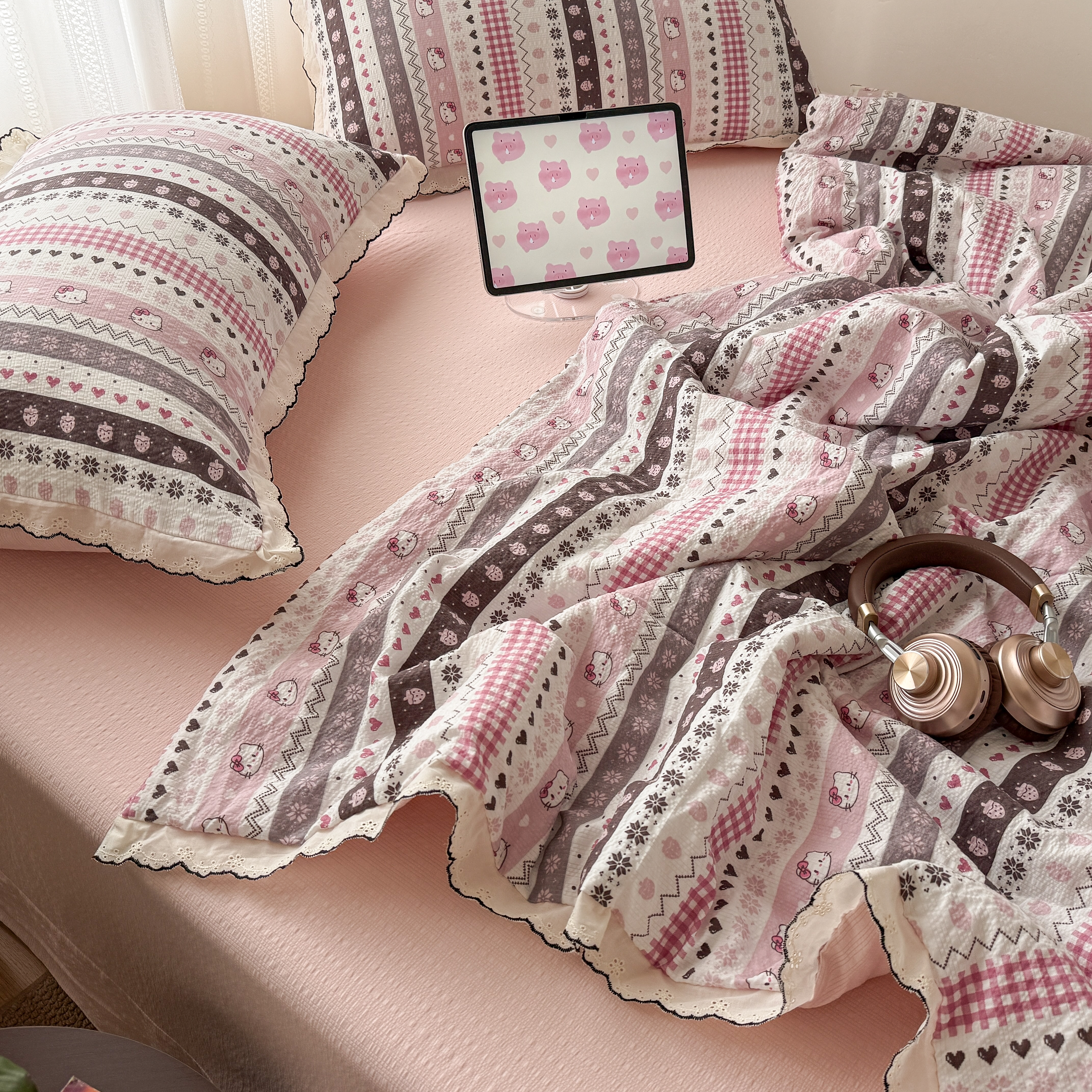 欧尚 2026新款蕾丝花边夏被款四件套 猫咪集