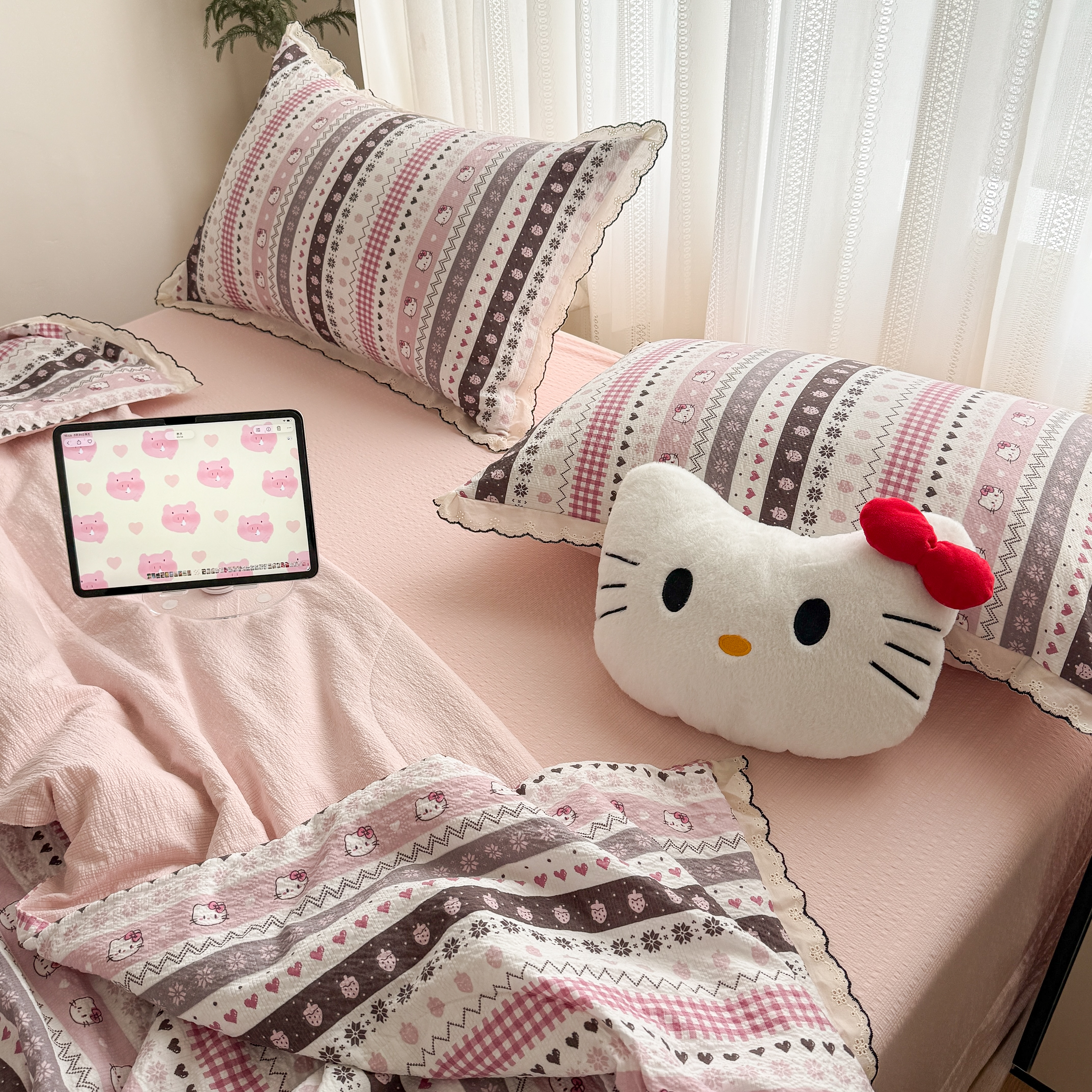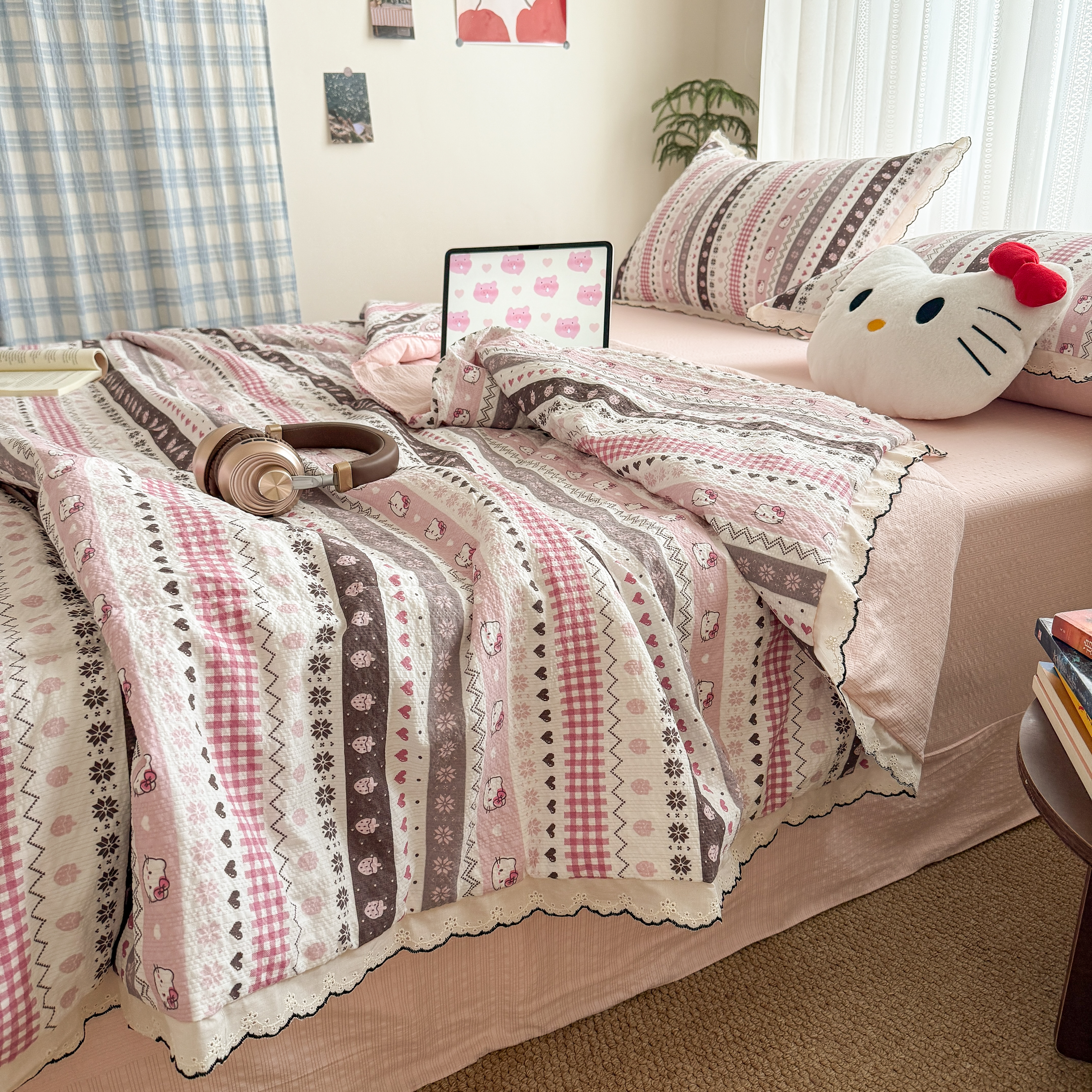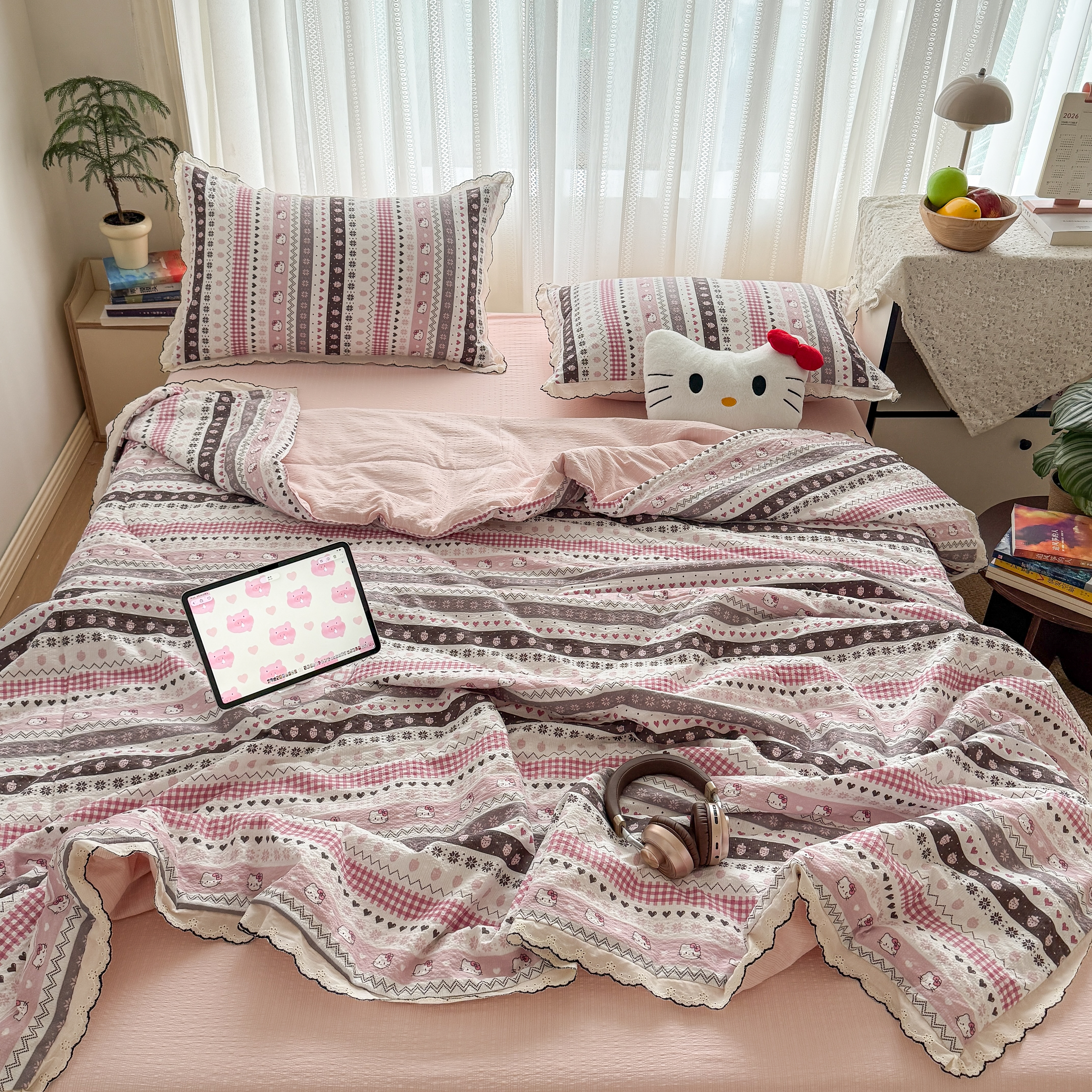 欧尚 2026新款蕾丝花边夏被款四件套 猫咪集