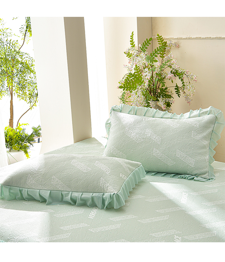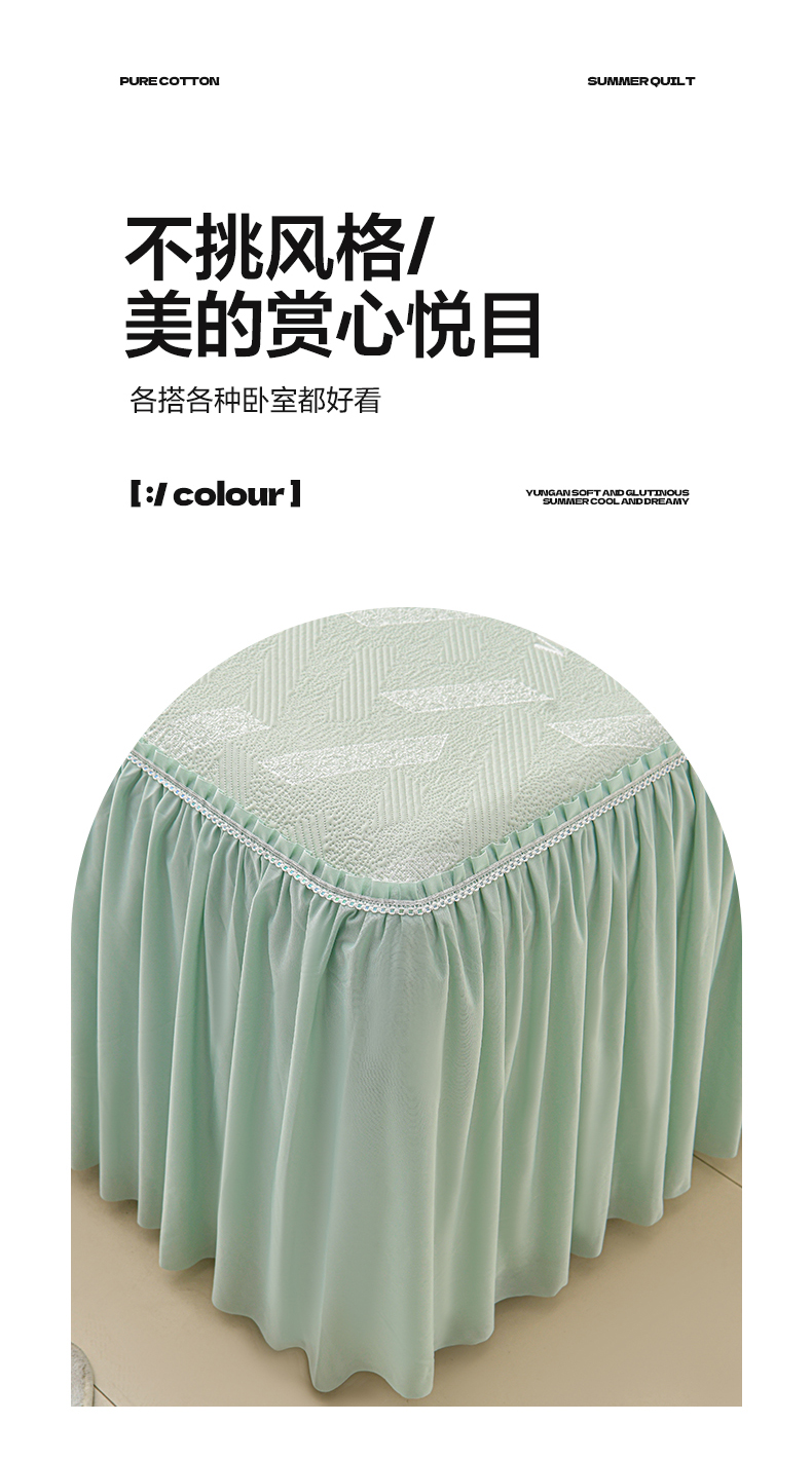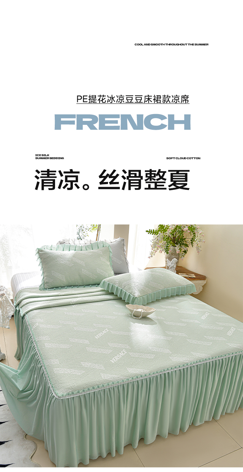 商品名称:绘萱家居 2026新款PE提花冰凉豆豆床裙款凉席席子凉席 帝塞纳-绿