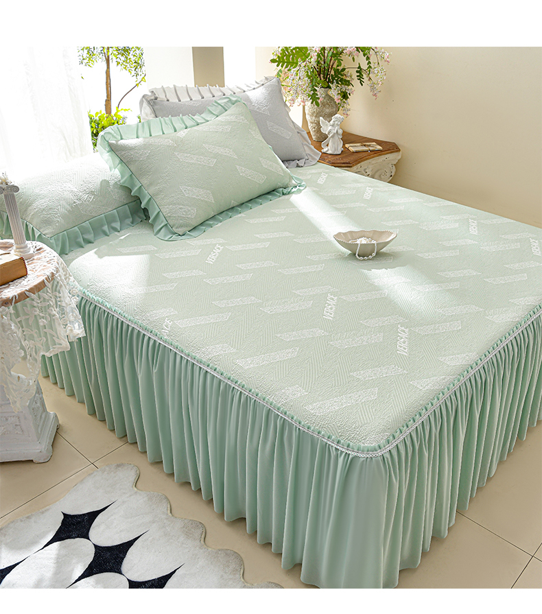 绘萱家居 2026新款PE提花冰凉豆豆床裙款凉席席子凉席 帝塞纳-绿