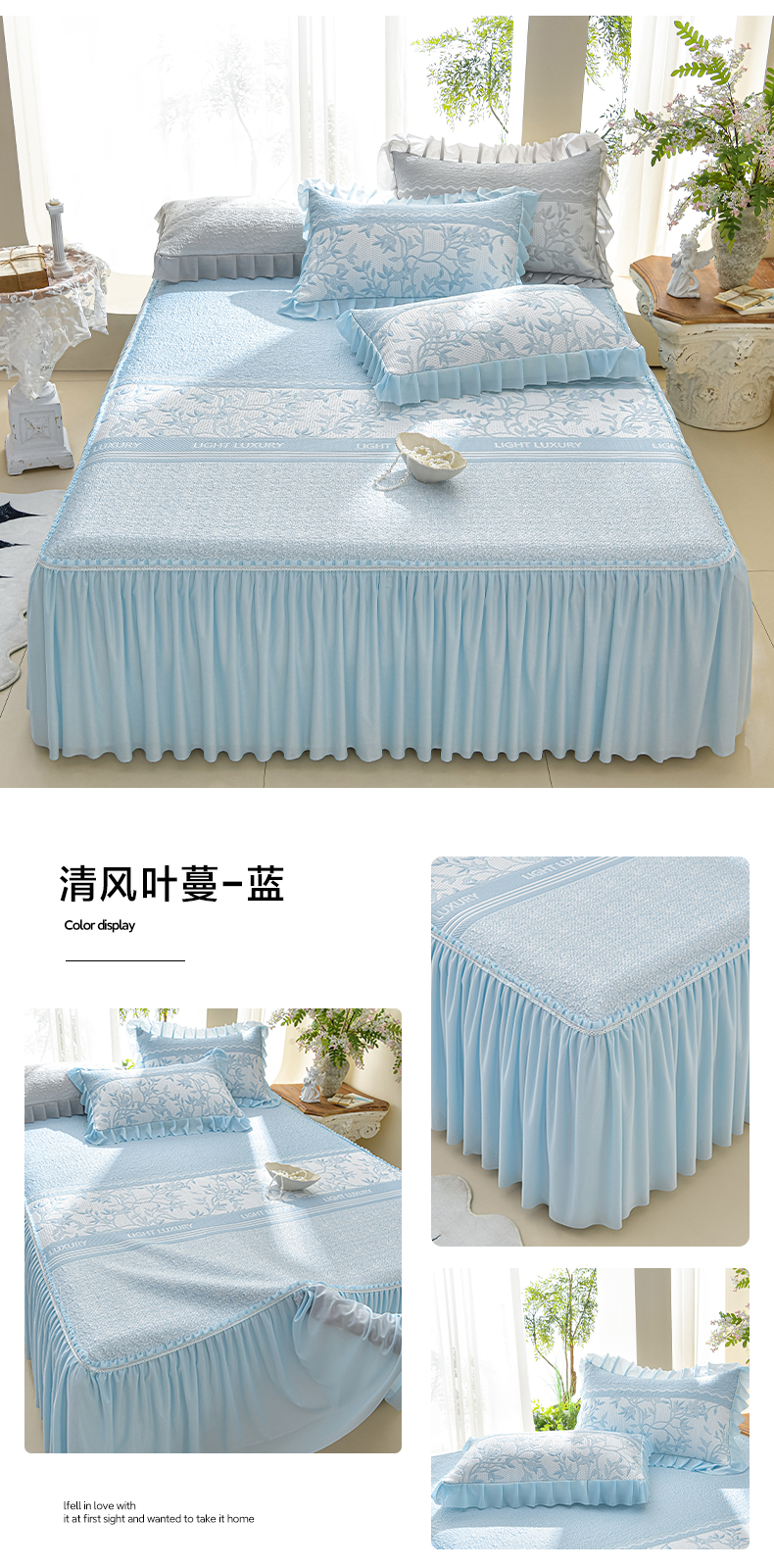 (总)绘萱家居 2026爆款冰凉豆豆凉席三件套床裙款冰丝软席子,叶影漫纱-绿,冰凉豆豆-粉,冰凉豆豆-灰,冰凉豆豆-蓝,冰凉豆豆-绿,叶影漫纱-粉,叶影漫纱-灰,叶影漫纱-蓝