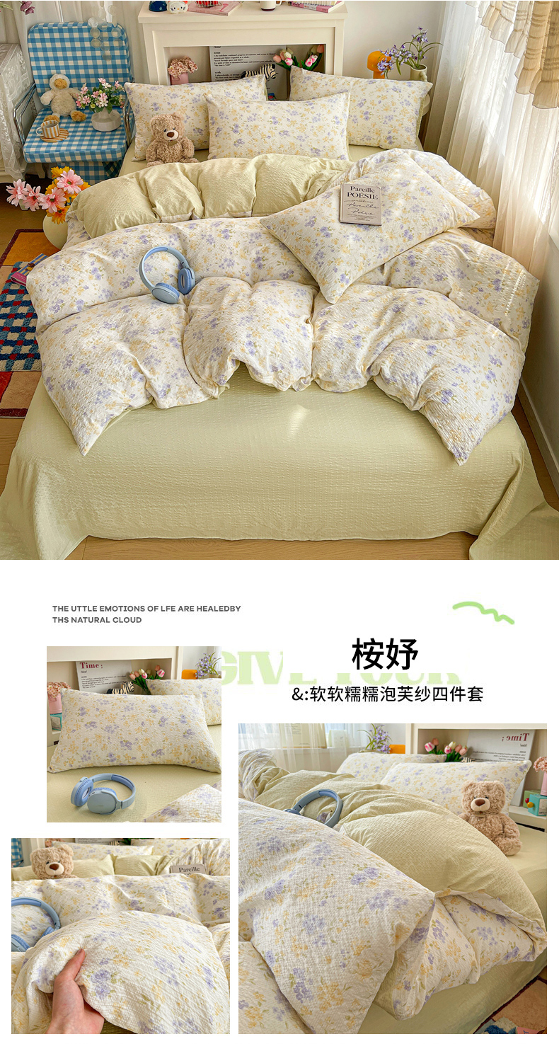 当前位置: 91家纺网 > 商品网购 > 床品套件 > 四件套 > 其它四件套 > N先生+V 13814689556 发大图/买家秀 2026新款A类软糯糯泡芙纱四件套 槿汐