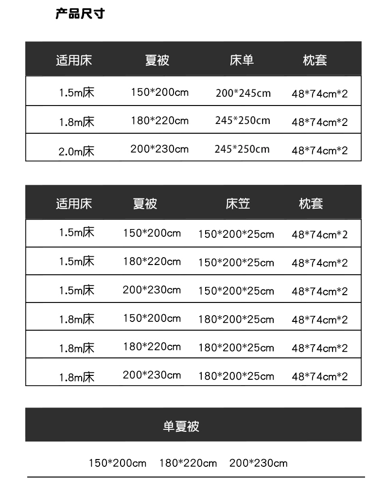 200x230cm单夏被+1.5床笠+枕套一对