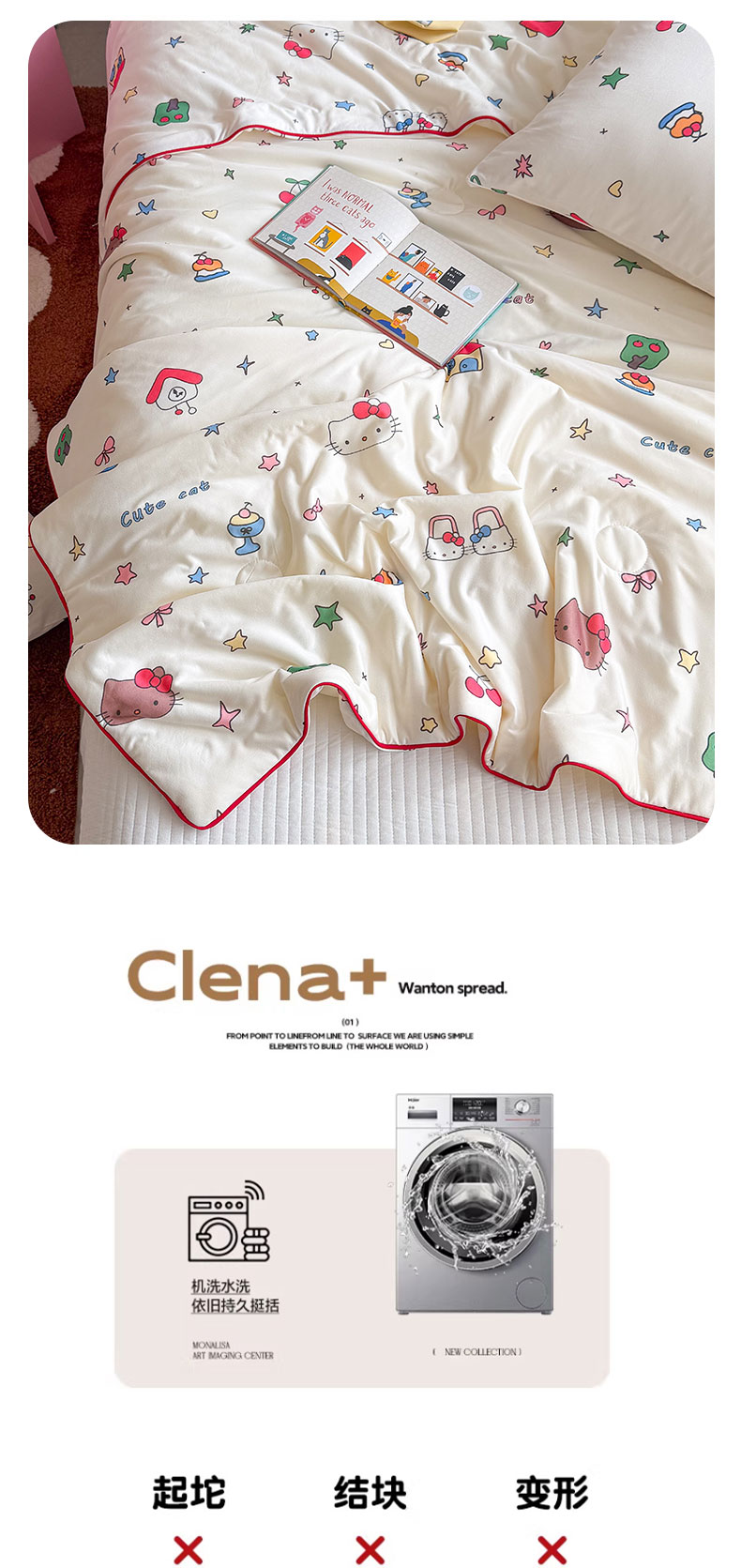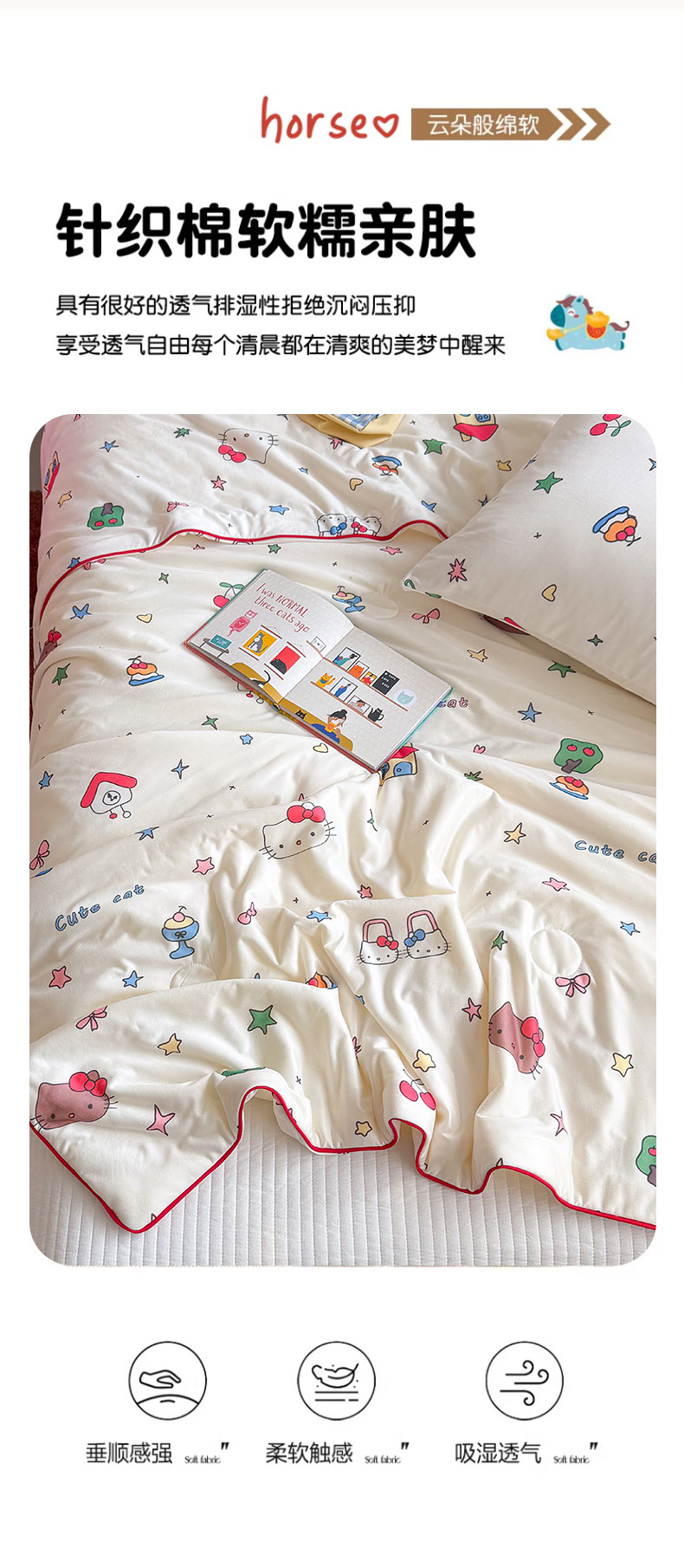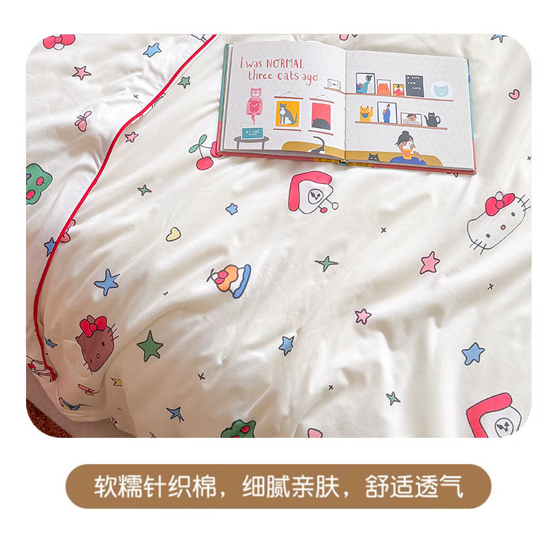 商品名称:桃子家居 2026新款A类卡通小清新奶乎乎高品质牛奶丝软糯针织棉嵌绳工艺夏被系列 针织嵌绳-星梦猫咪