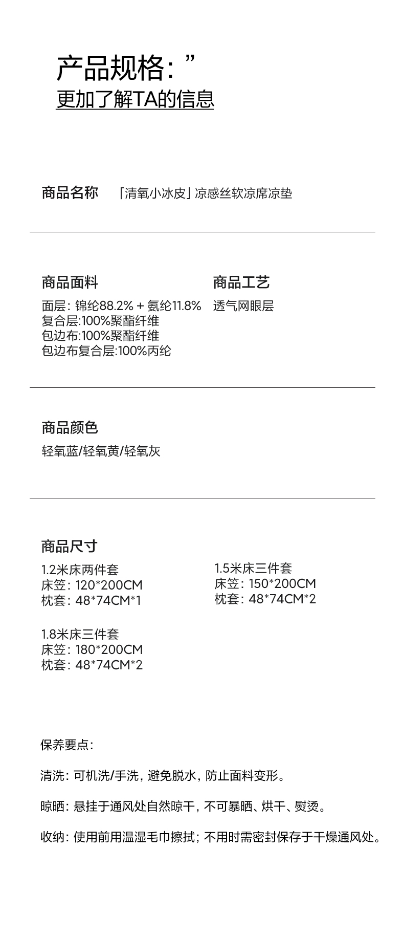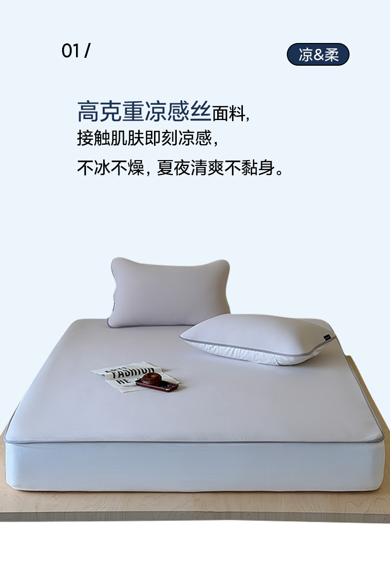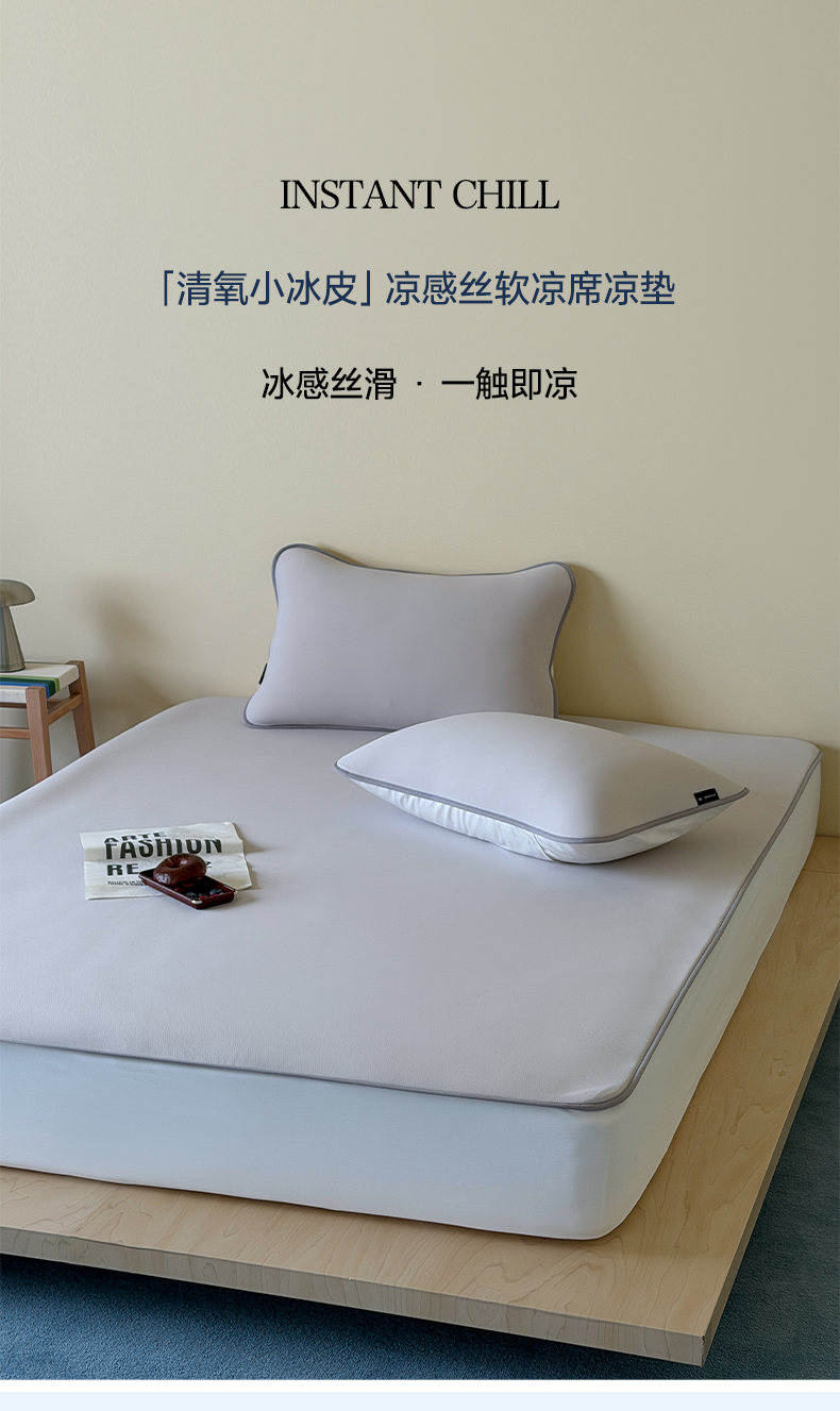 商品名称:三味舒屋 2026新款【清氧小冰皮】凉感丝软凉席凉垫 轻氧灰
