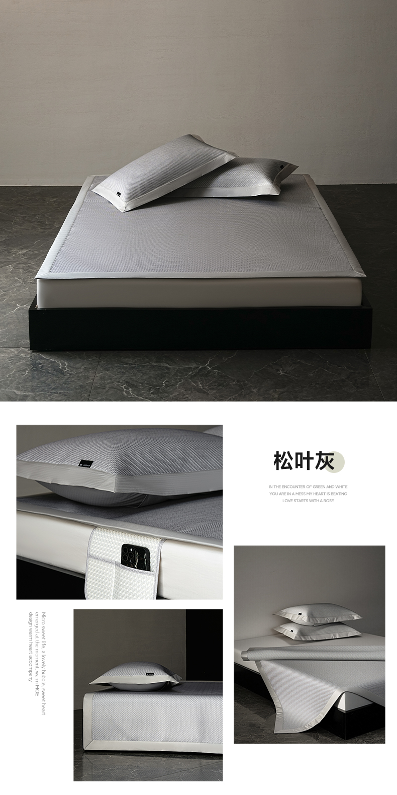商品名称:三味舒屋 2026新款松间觅光系列印花冰丝席 松叶灰 床笠款
