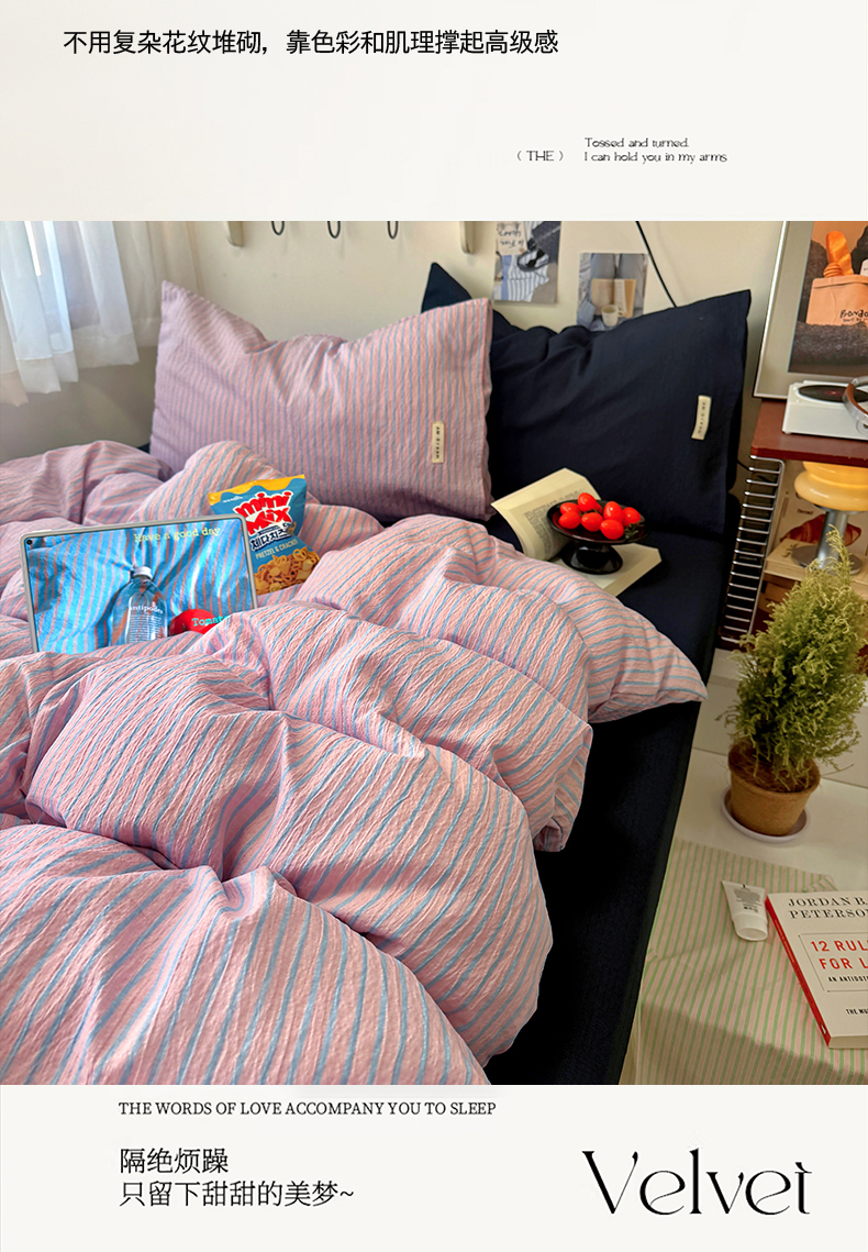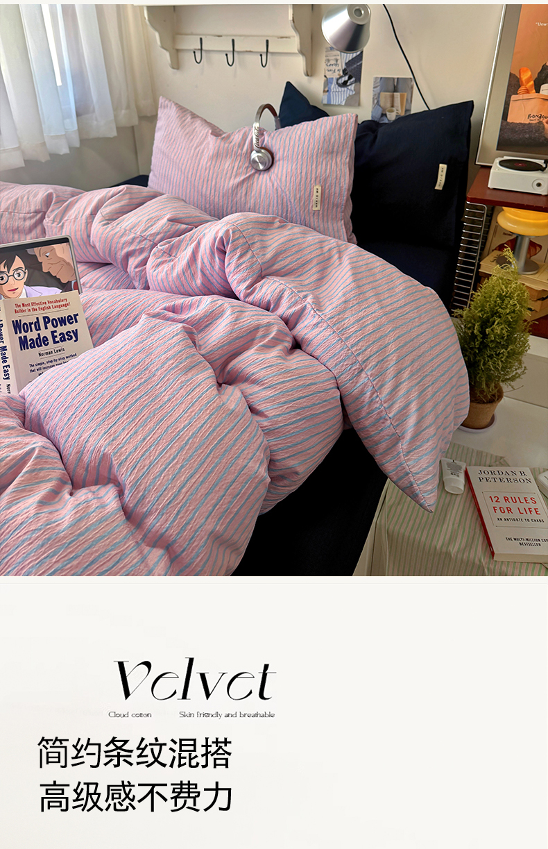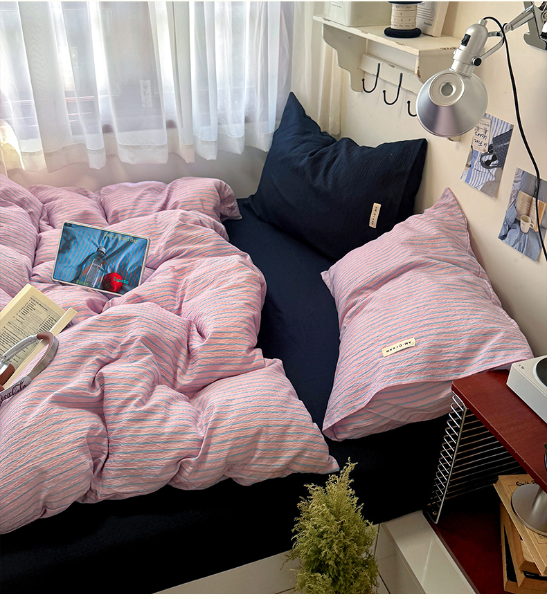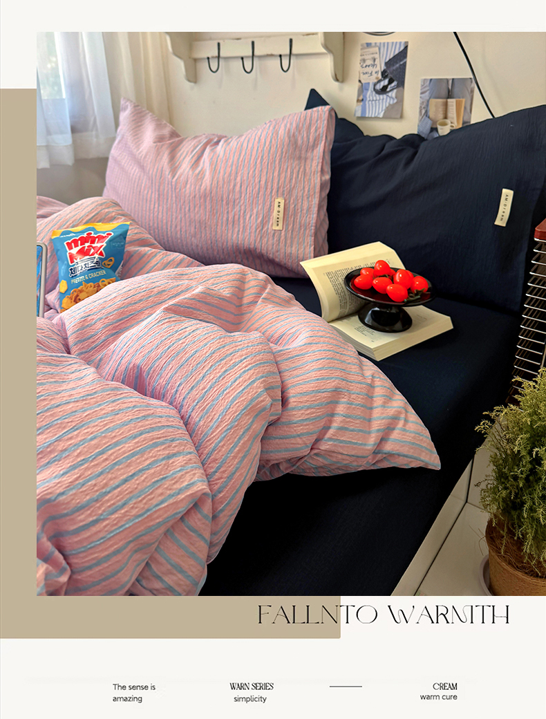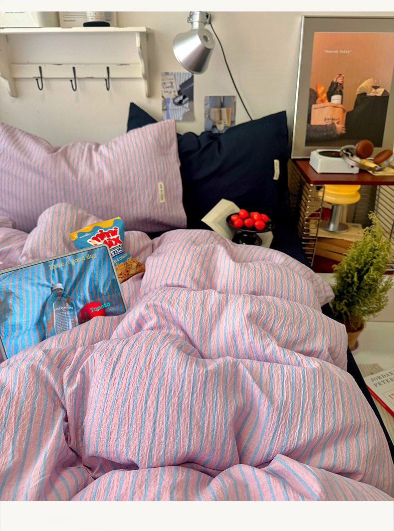 当前位置: 91家纺网 > 商品网购 > 床品套件 > 四件套 > 其它四件套 > 阿曼达 2026春夏新款简约美式条纹混搭四件套 美式休闲-浅粉条
