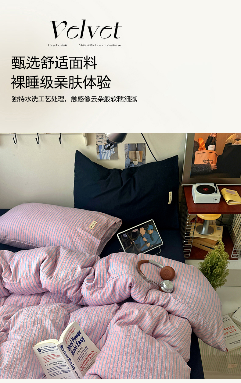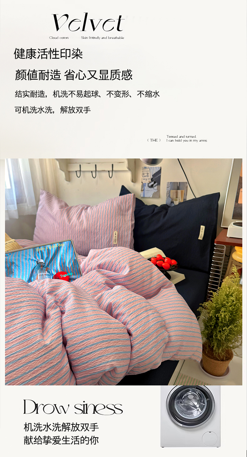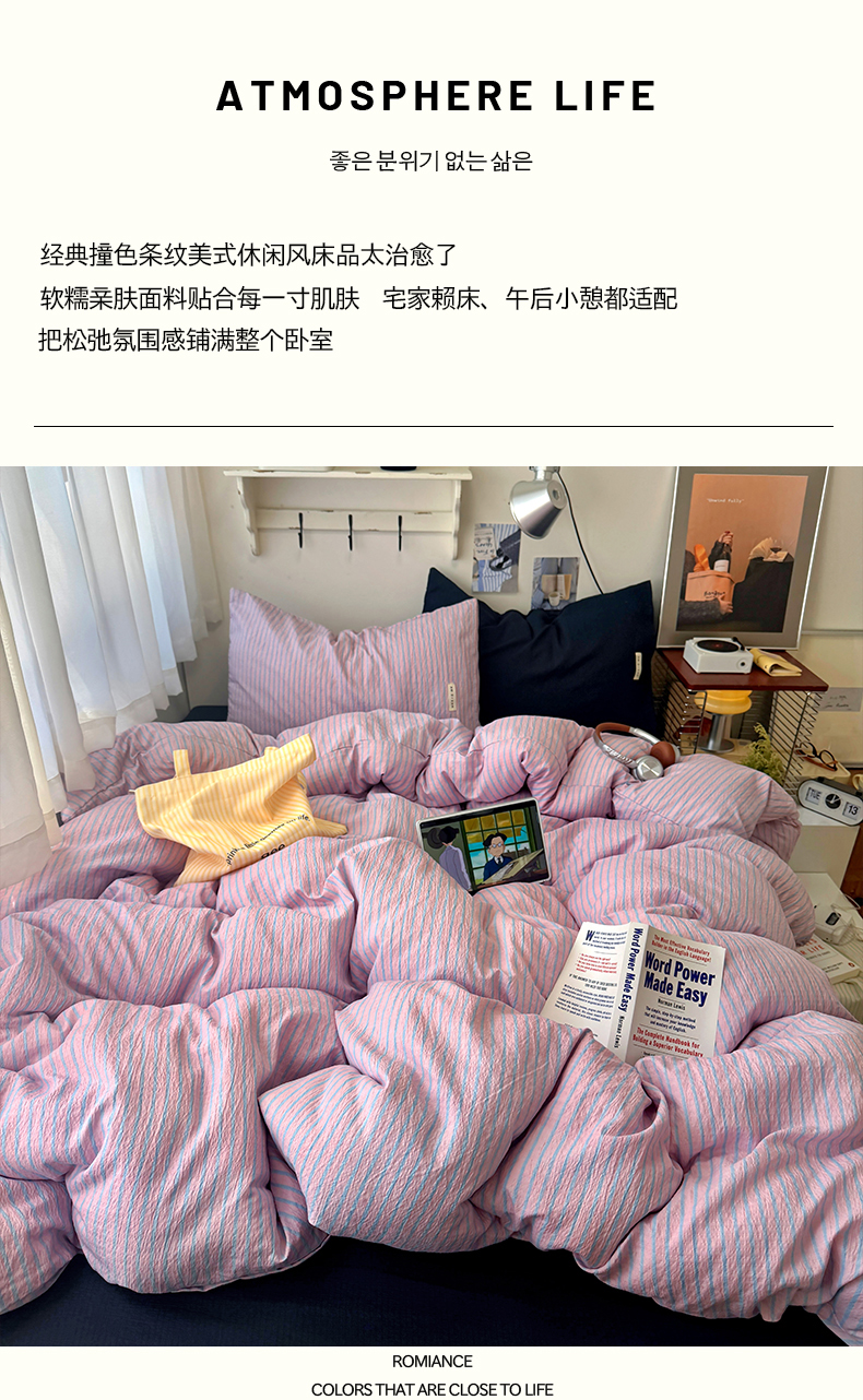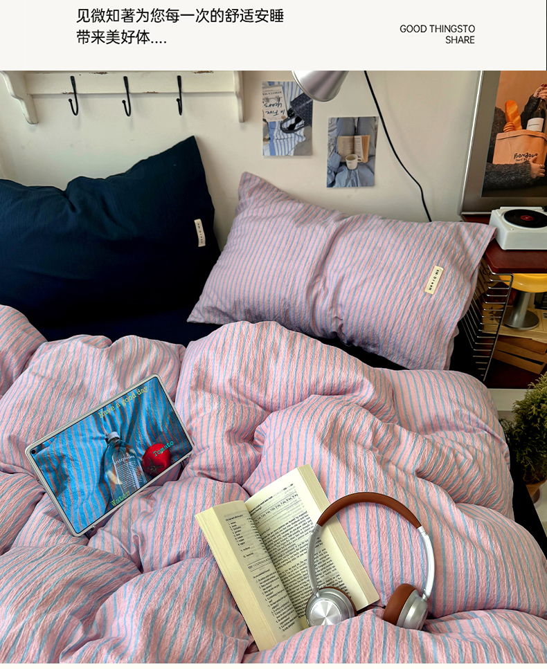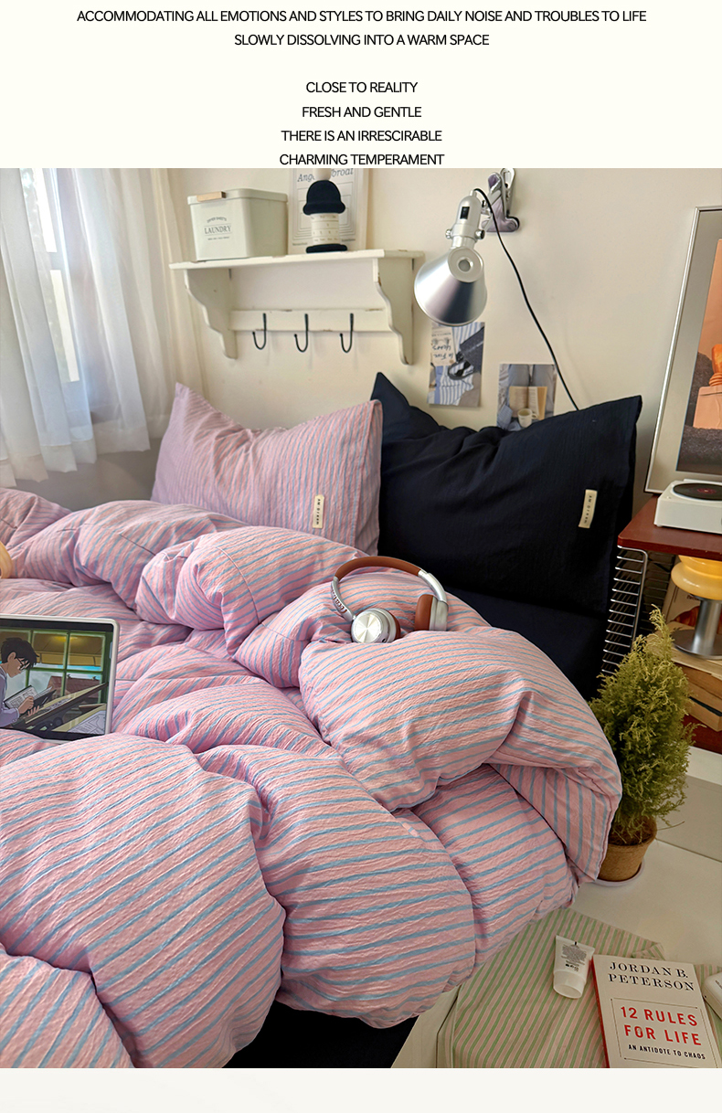 当前位置: 91家纺网 > 商品网购 > 床品套件 > 四件套 > 其它四件套 > 阿曼达 2026春夏新款简约美式条纹混搭四件套 美式休闲-浅粉条