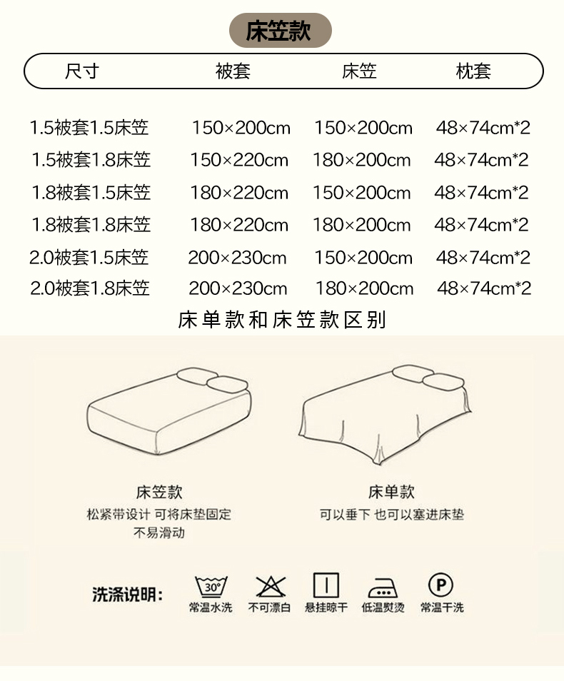 【床笠款】1.8四件套-被套150x200 | ¥52.00 |