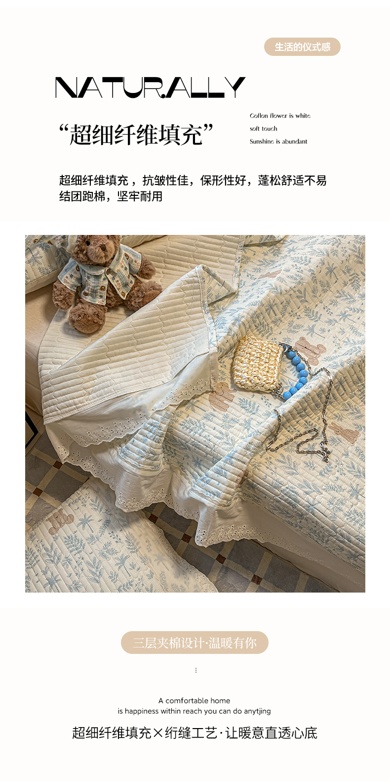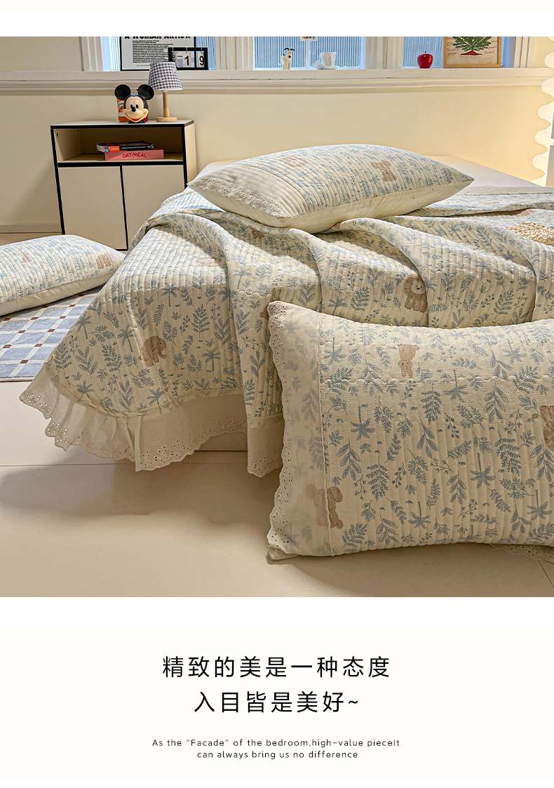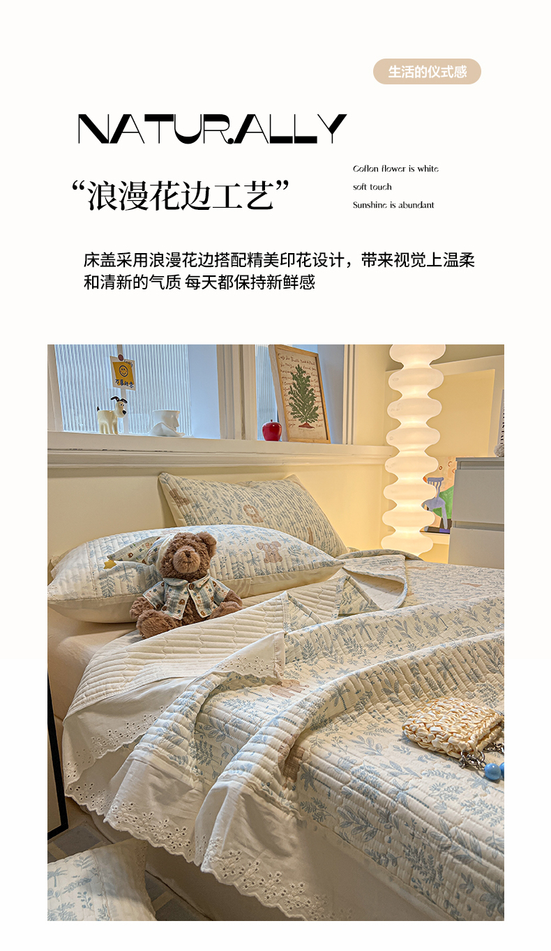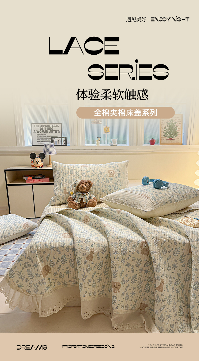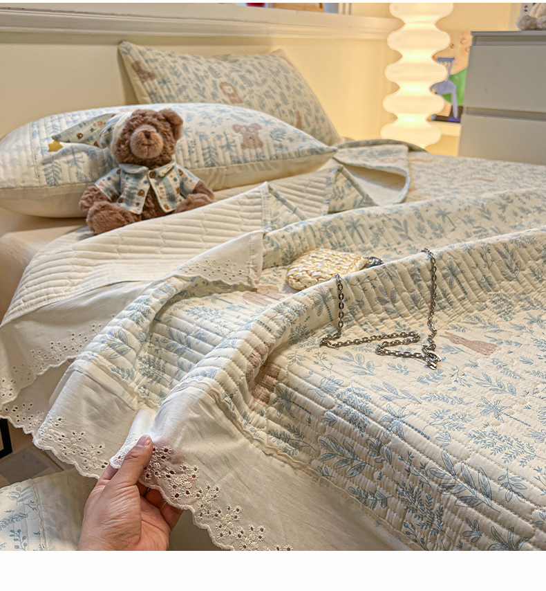 商品名称:舒居家纺 2026春夏新款花边款全棉印花单床盖 床盖单件(第一批) 森林小镇