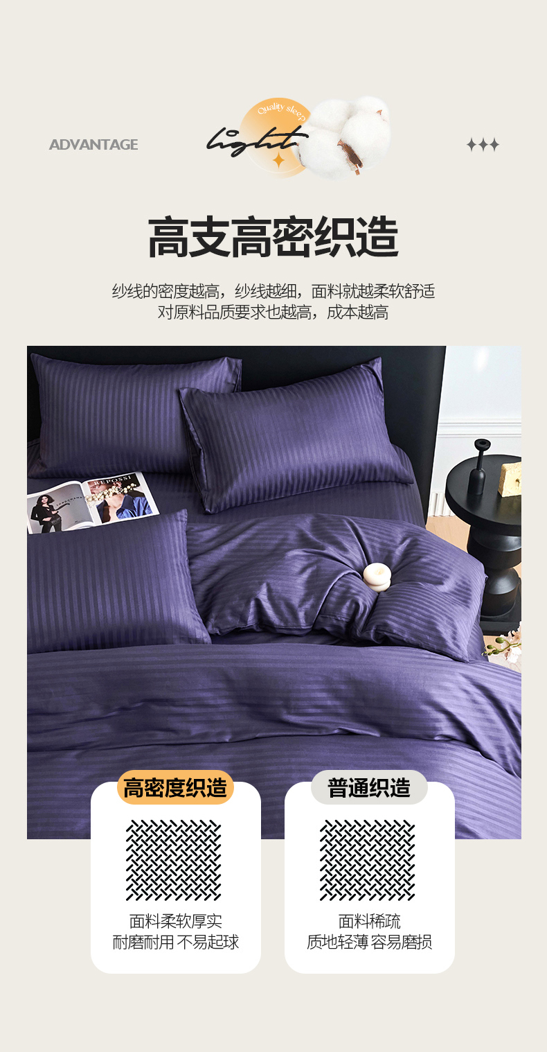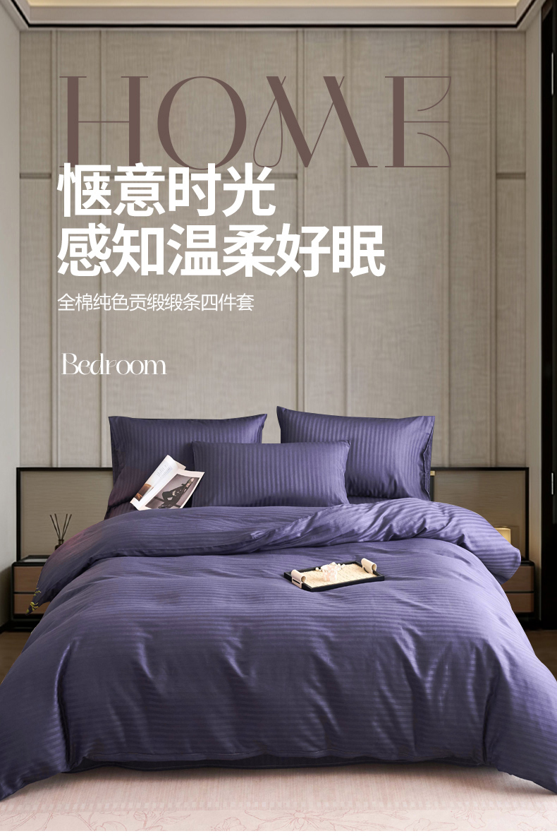当前位置: 91家纺网 > 商品网购 > 床品套件 > 四件套 > 全棉普通四件套 > 兰紫橙家纺 2026新款全棉纯棉纯色贡缎缎条四件套 缎条-紫罗兰