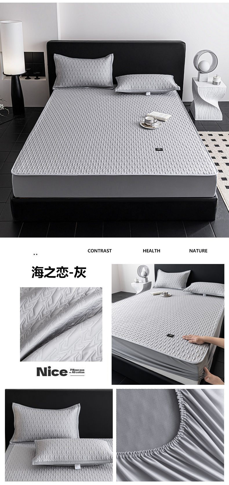 当前位置: 91家纺网 > 商品网购 > 床上用品 > 凉席 > 其他凉席 > 耐思家纺 2026新款A类复合三明治PE乙纶提花冰豆豆凉席床笠海之恋系列(提供买家秀) 海之恋-灰床笠款
