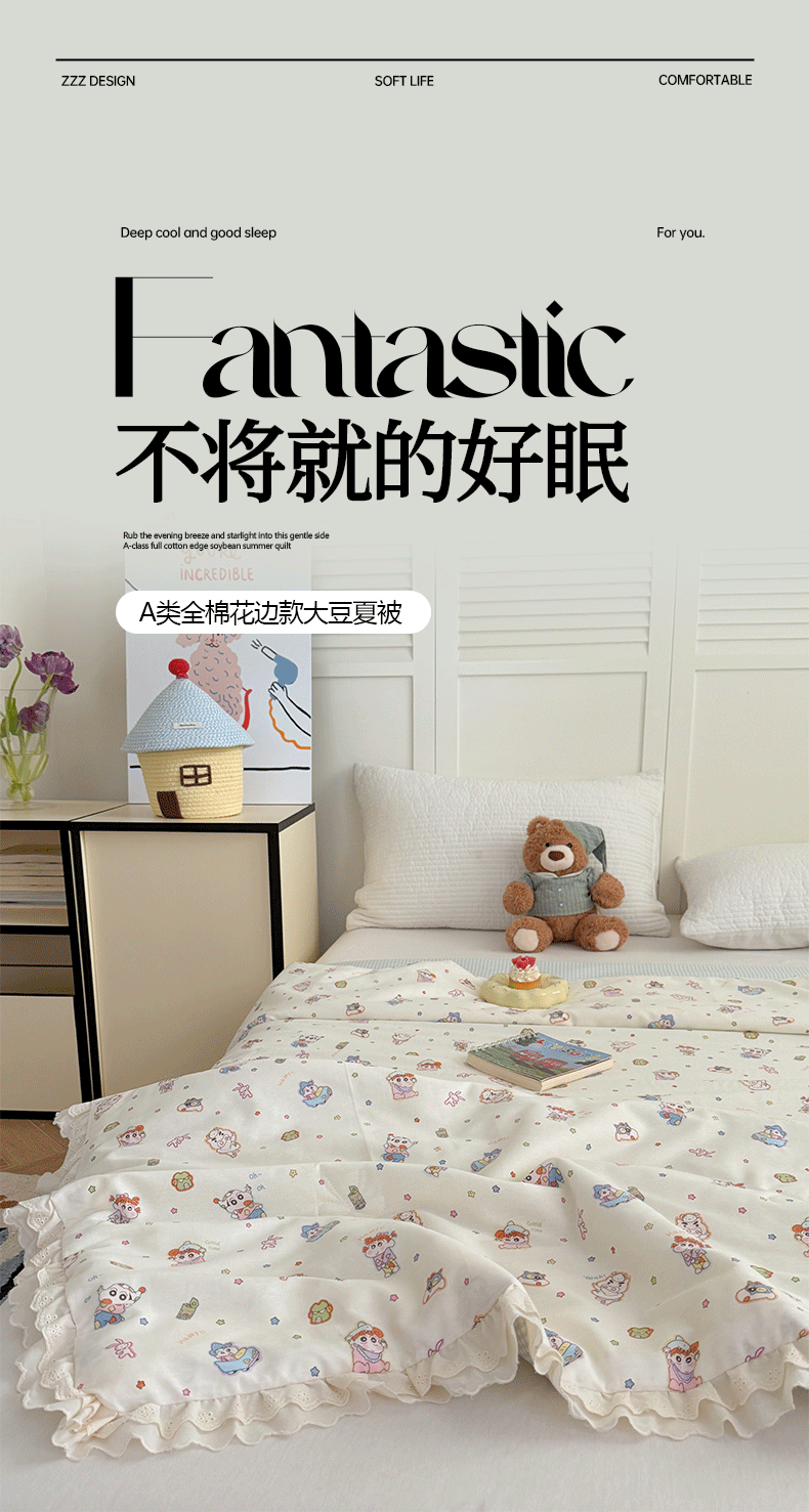 (总)暖生活 2026春夏新款全棉花边款夏被夏凉被空调被-卡通版,组合图仅供展示不可下单,快乐小新,蕾丝兔,南瓜小熊,软蓝小宠,小猫花梦,小小马,星月凯蒂,紫芋小兔,字母小象