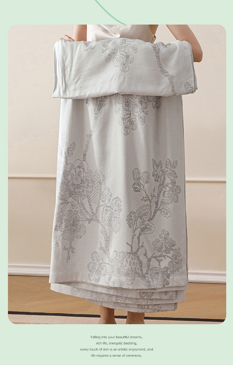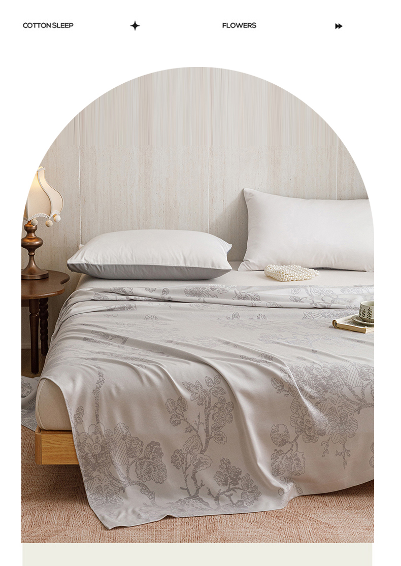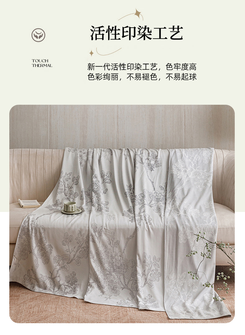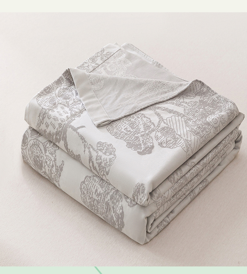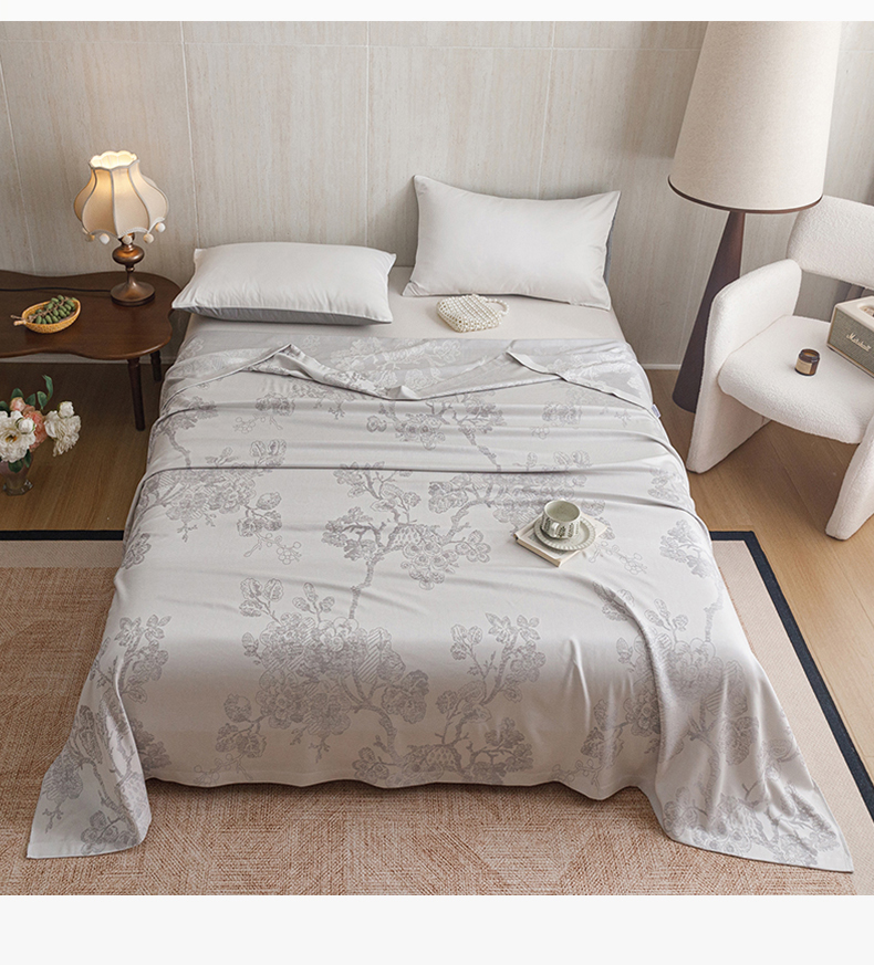 商品名称:悦然毛巾被 2026新款竹纤维冷感毯盖毯再生素纤维休闲夏被毛巾被夏凉被空调被 浪漫花开银