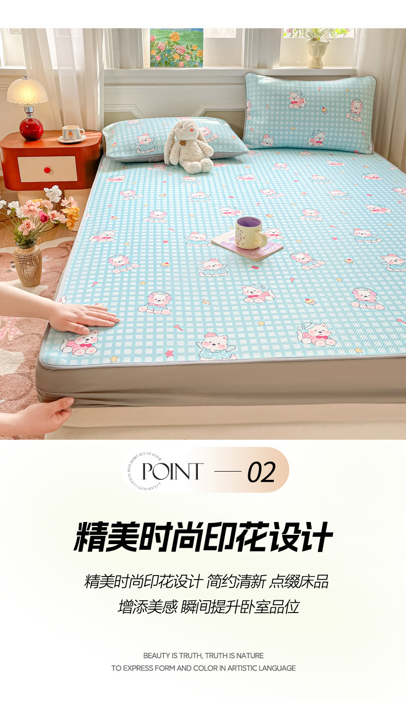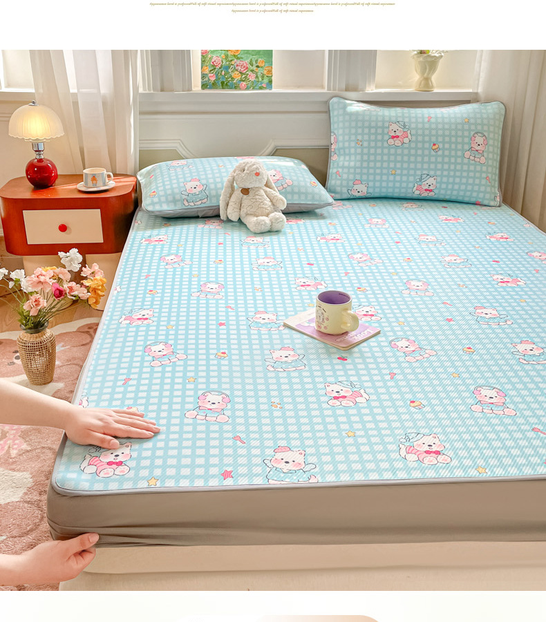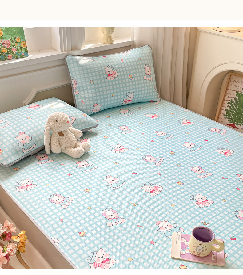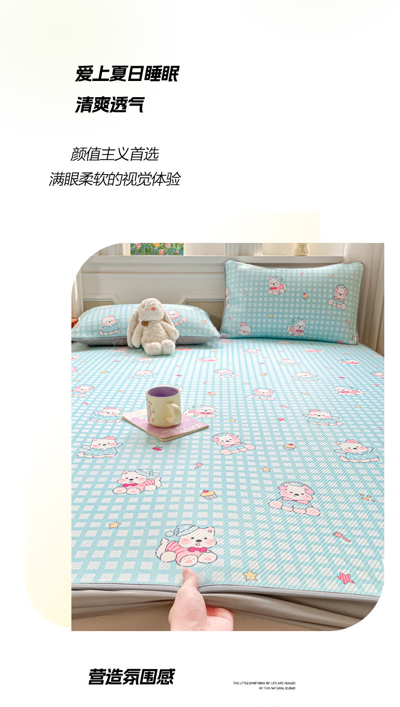 (总)女子家纺 2026新款大斜纹复合冰丝凉席-床笠款,爱心气泡粉-床笠款,萌熊印象-床笠款,奶油草莓-床笠款,拈花湾蓝-床笠款,七彩龙-床笠款,奇妙幻想-床笠款,水木年华-床笠款,午后茶花-床笠款,悠悠小元-床笠款,尤克克里粉-床笠款