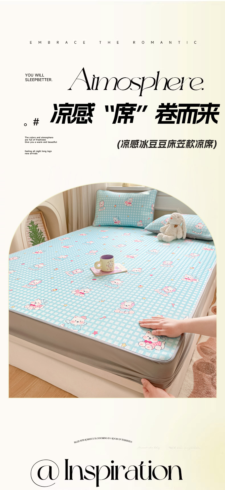 (总)女子家纺 2026新款大斜纹复合冰丝凉席-床席款,爱心气泡粉,萌熊印象,奶油草莓,拈花湾兰,七彩龙,奇妙幻想,水木年华,午后茶花,悠悠小元,尤克里里粉