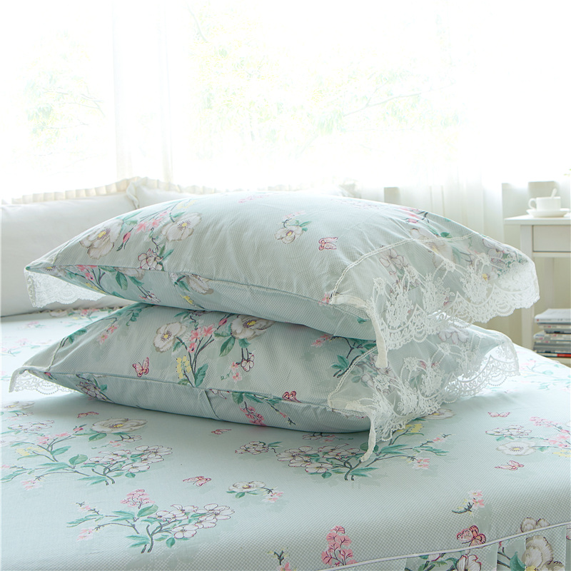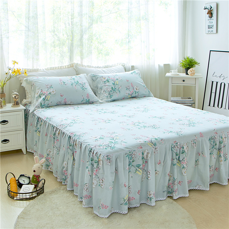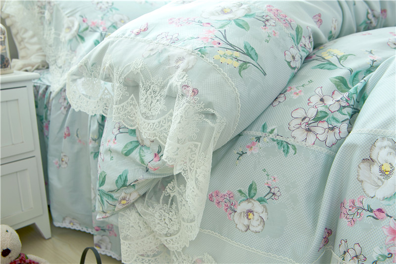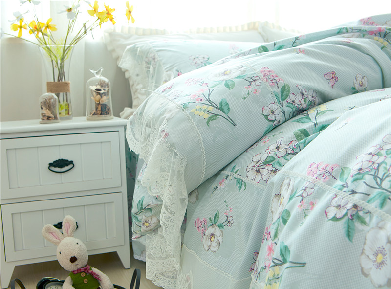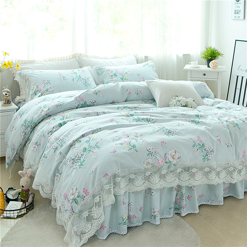 商品名称:菊上 优质全棉13372韩版蕾丝床裙款四件套 绿仙子