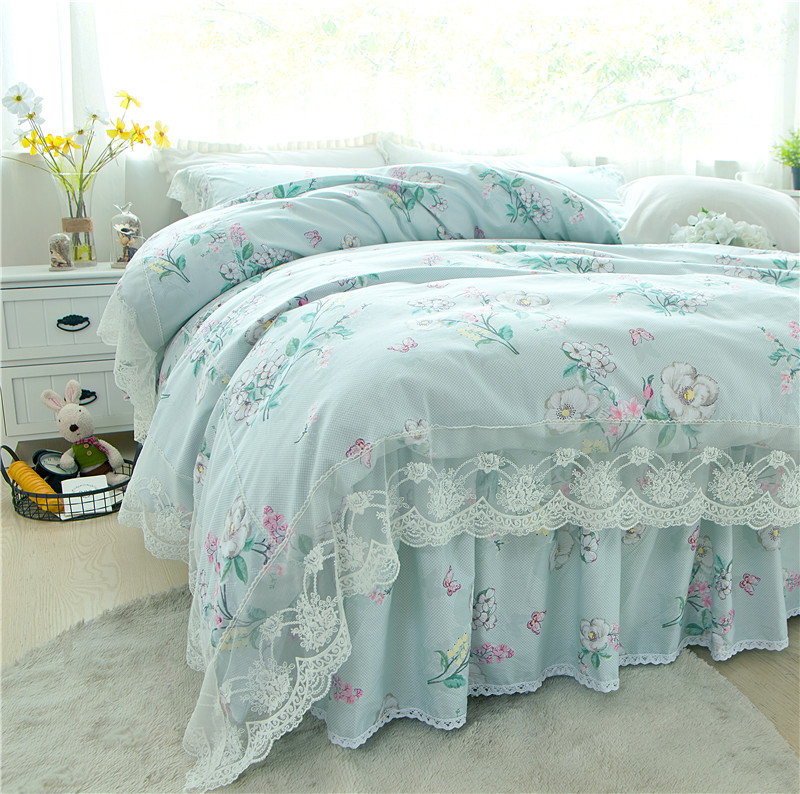 菊上 优质全棉13372韩版蕾丝床裙款四件套 绿仙子