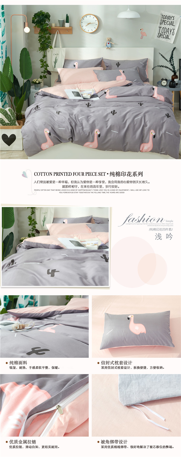 商品名称:漫调家纺 2018全棉北欧小清新四件套浅吟