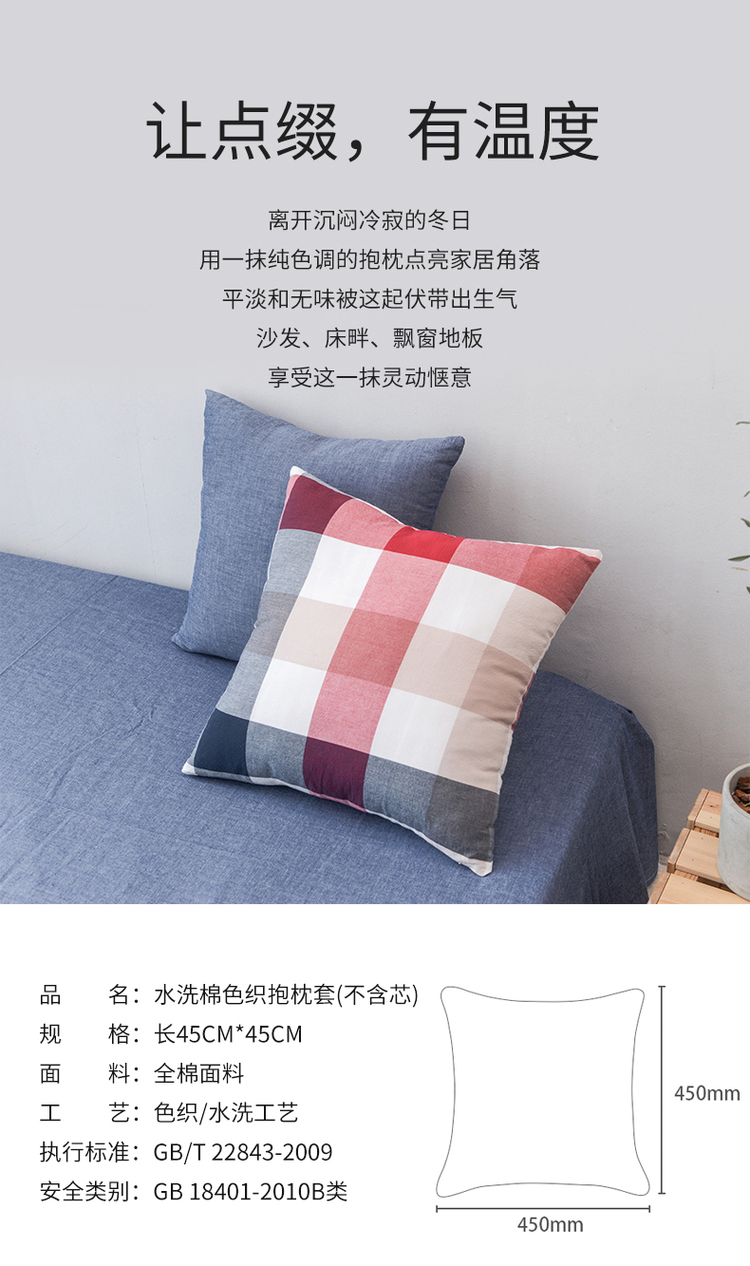 商品名称:柠萌家居 全棉色织水洗棉抱枕枕套格子系列一对