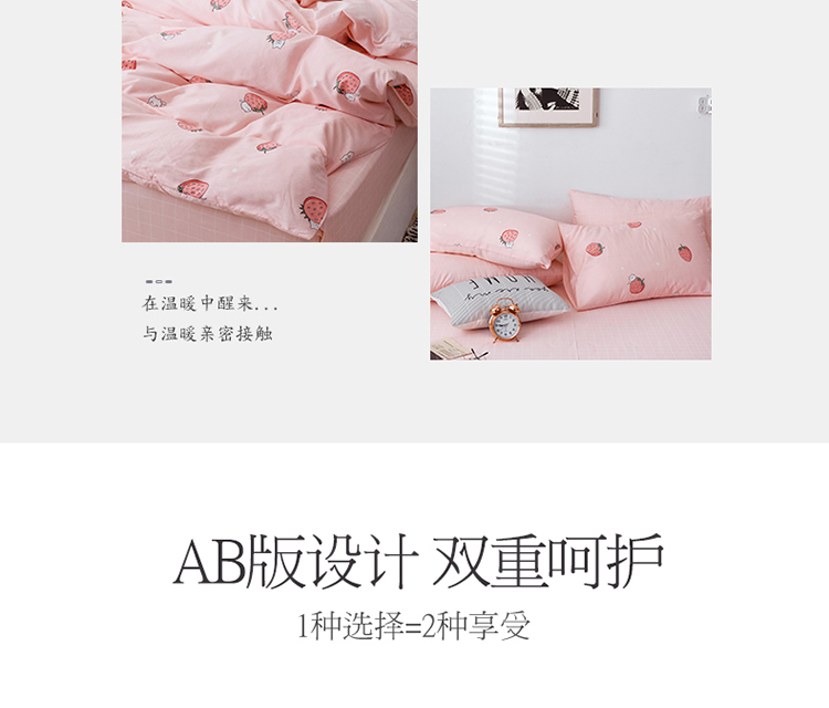 沐棉2019新款13370小卡通小清新四件套床单款 甜心草莓