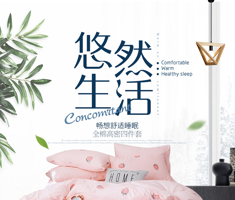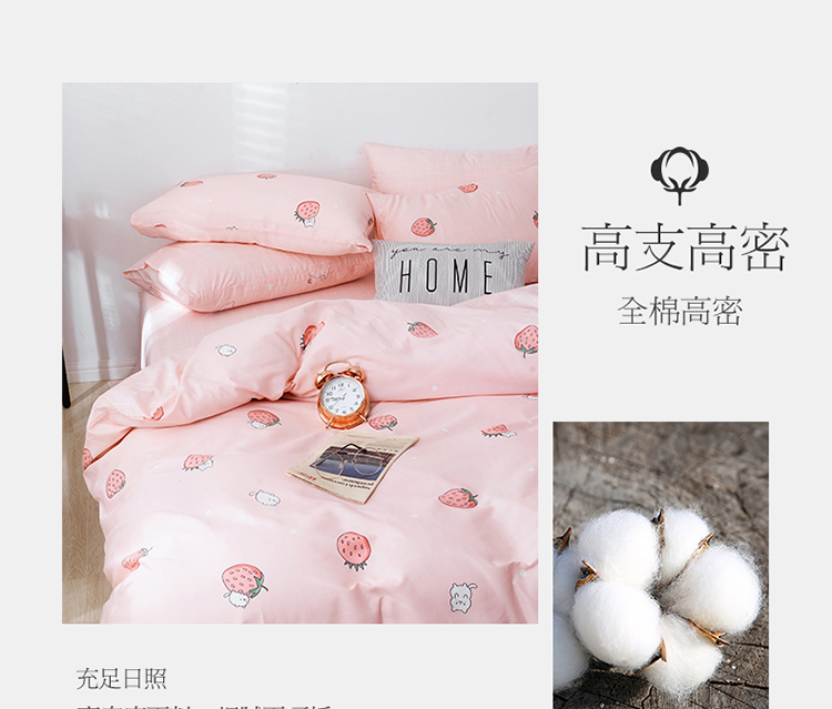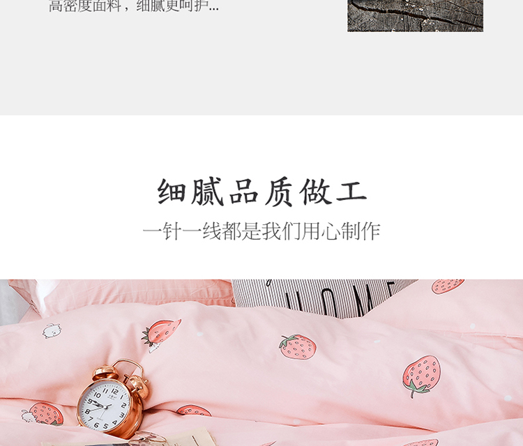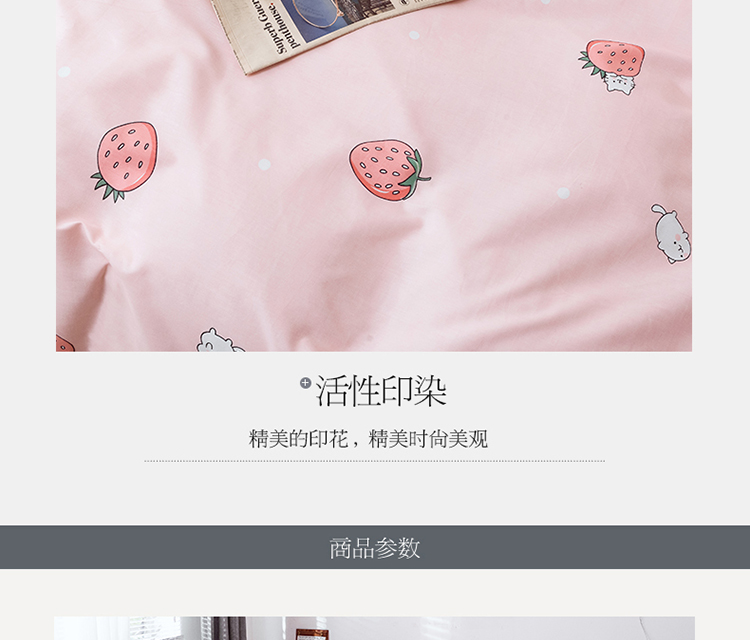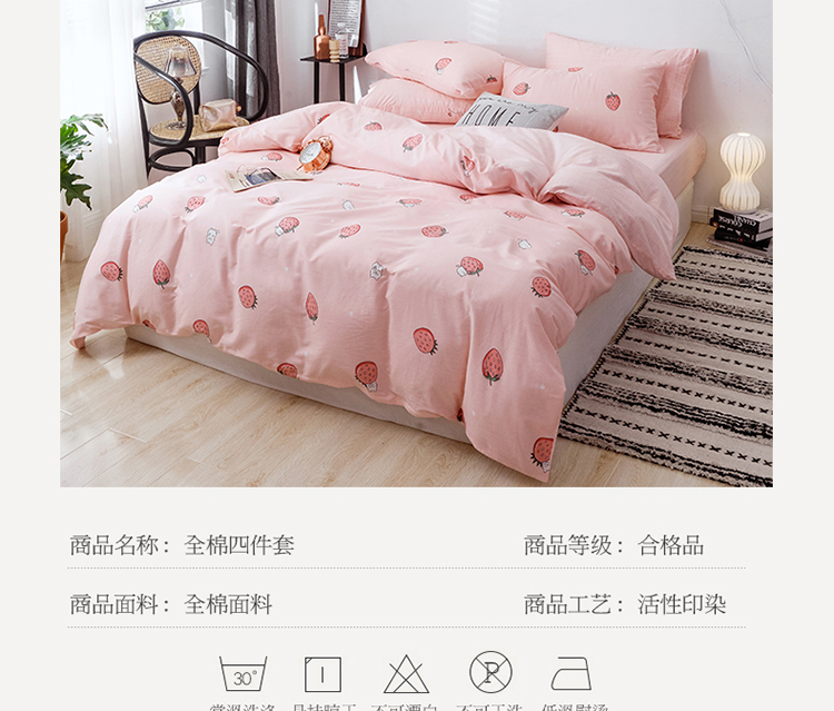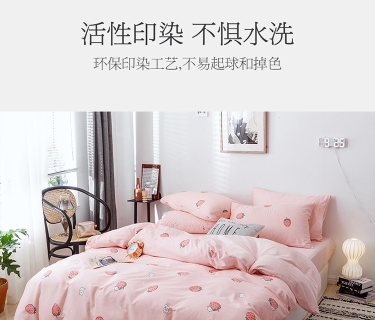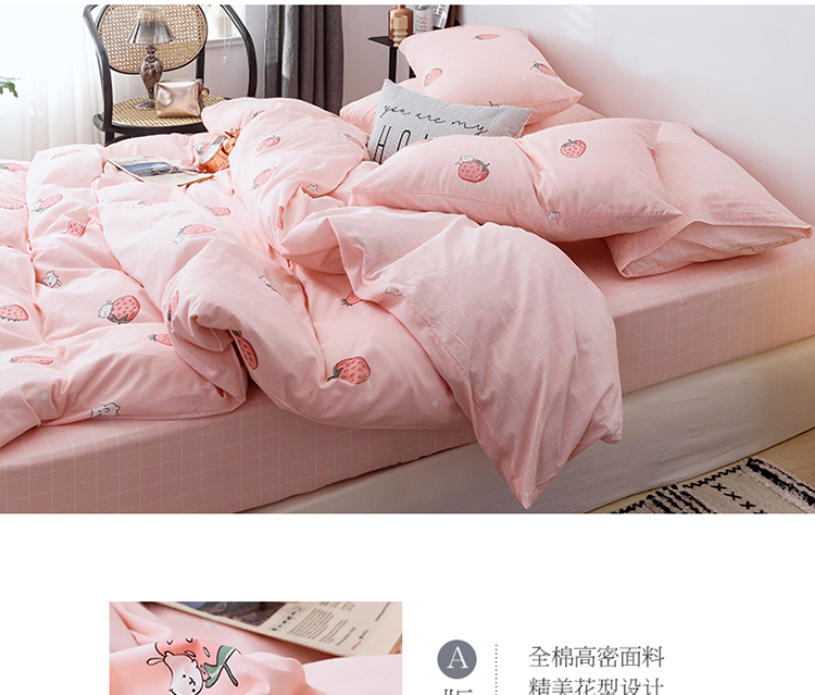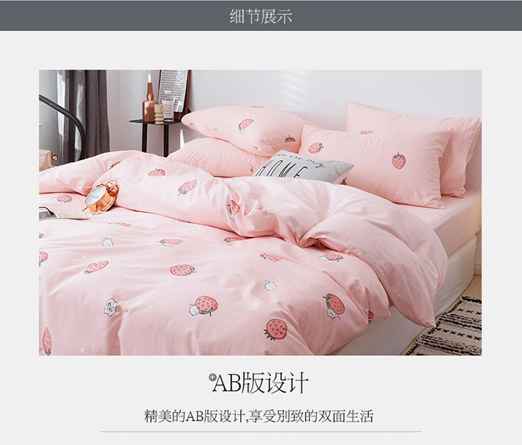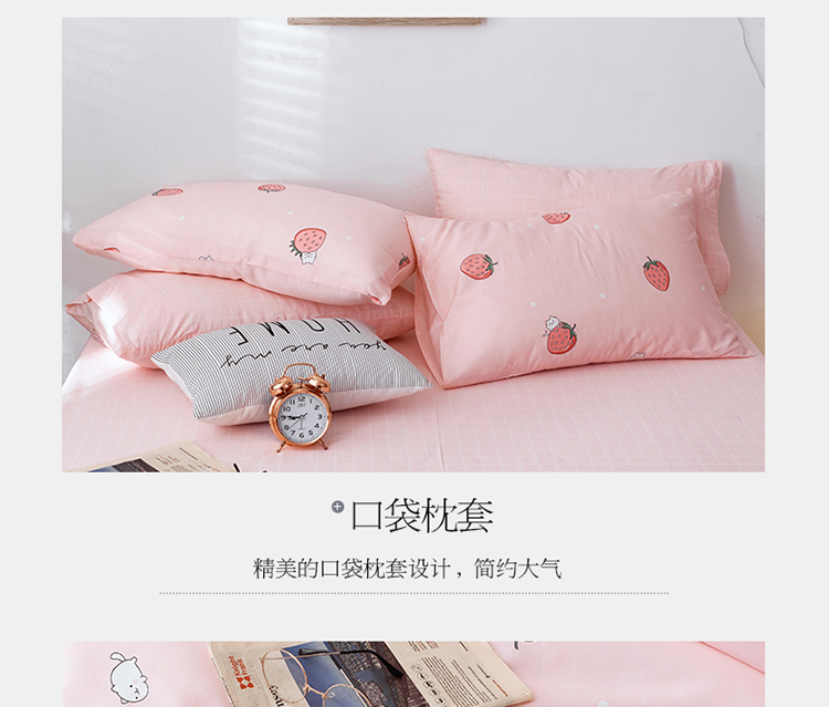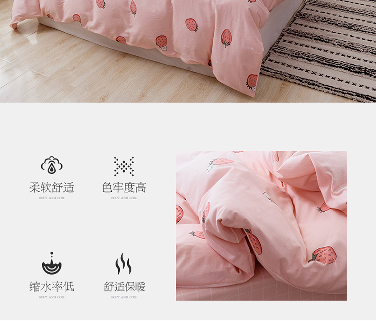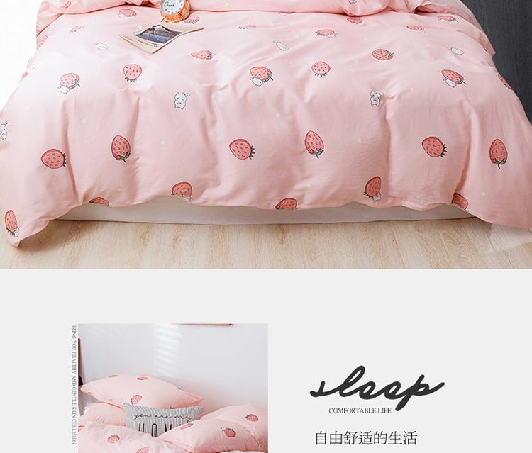 商品名称:沐棉2019新款13370小卡通小清新四件套床单款 甜心草莓