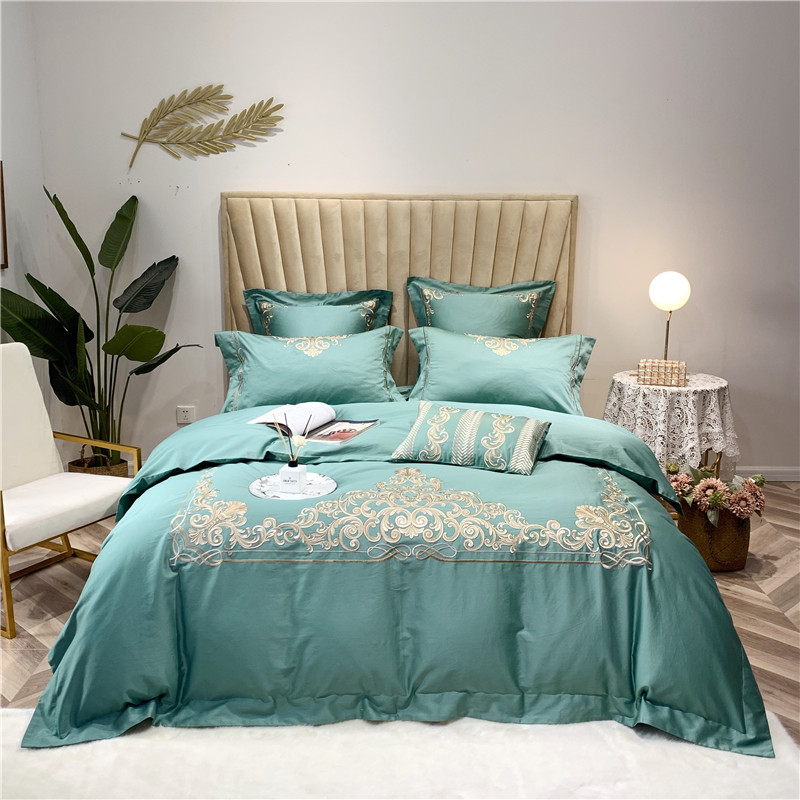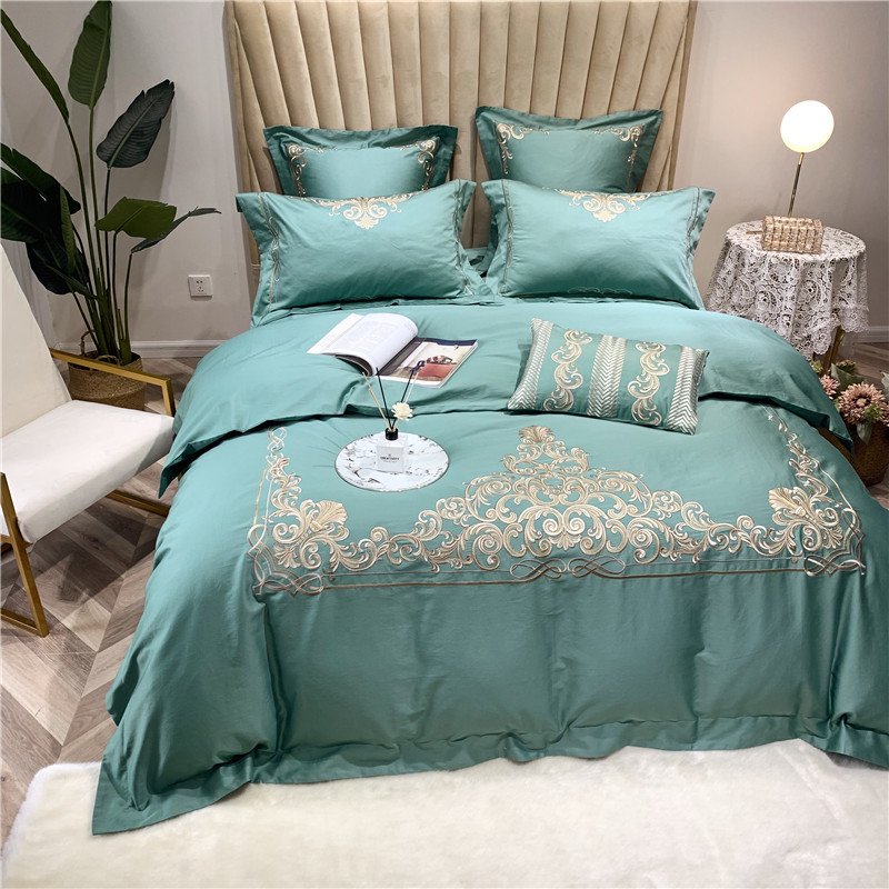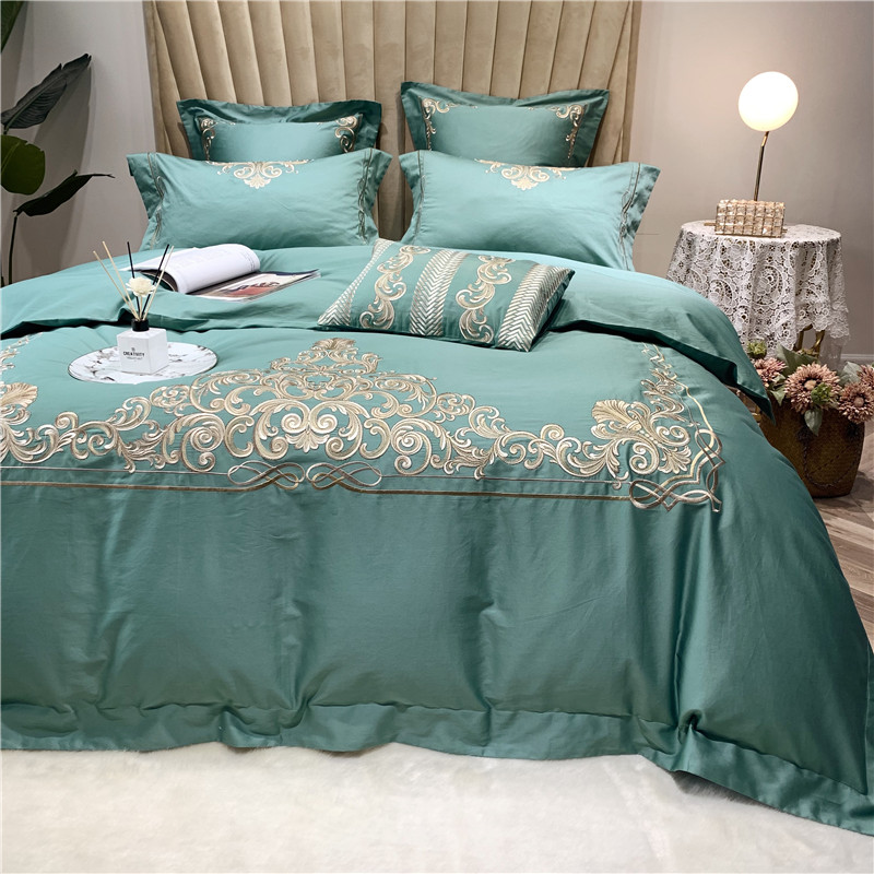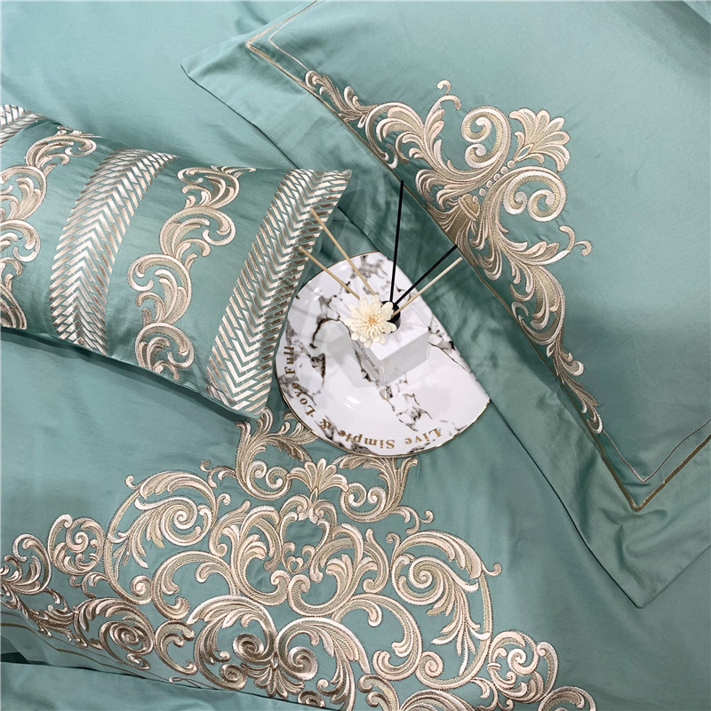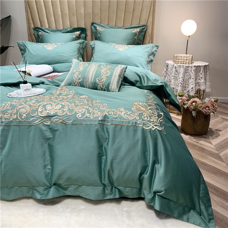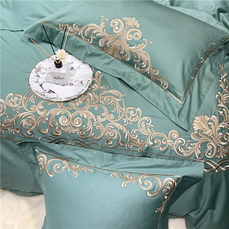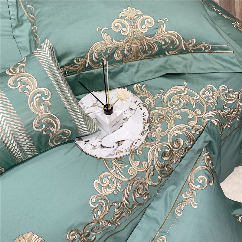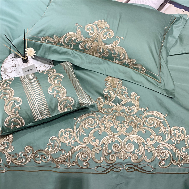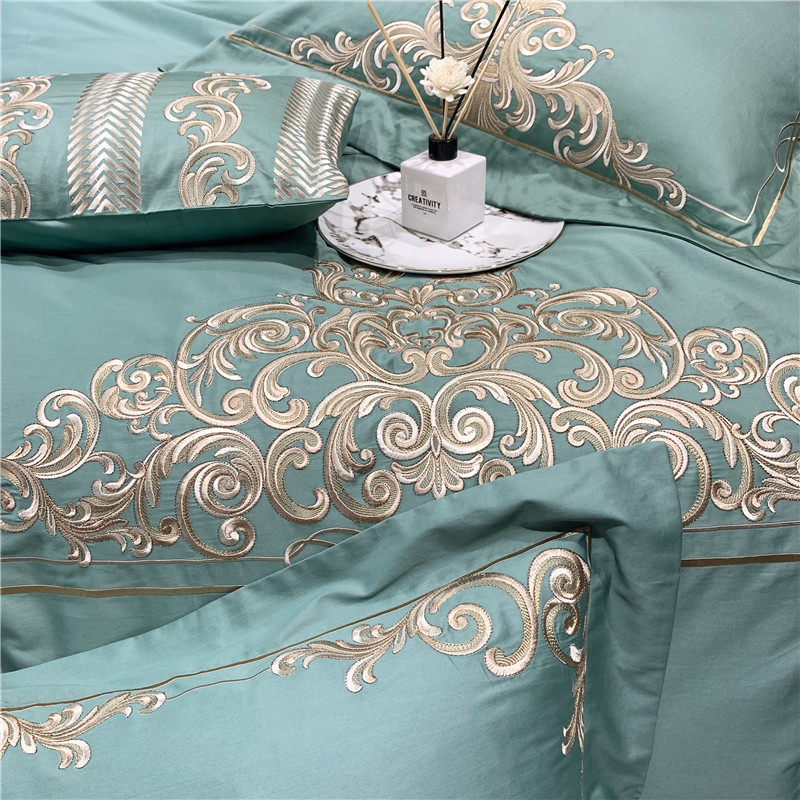 当前位置: 91家纺网 > 商品网购 > 床品套件 > 四件套 > 长绒棉四件套 > 馨蕊家居 2021新款60长绒棉绣花四件套 卢浮时尚-雅绿