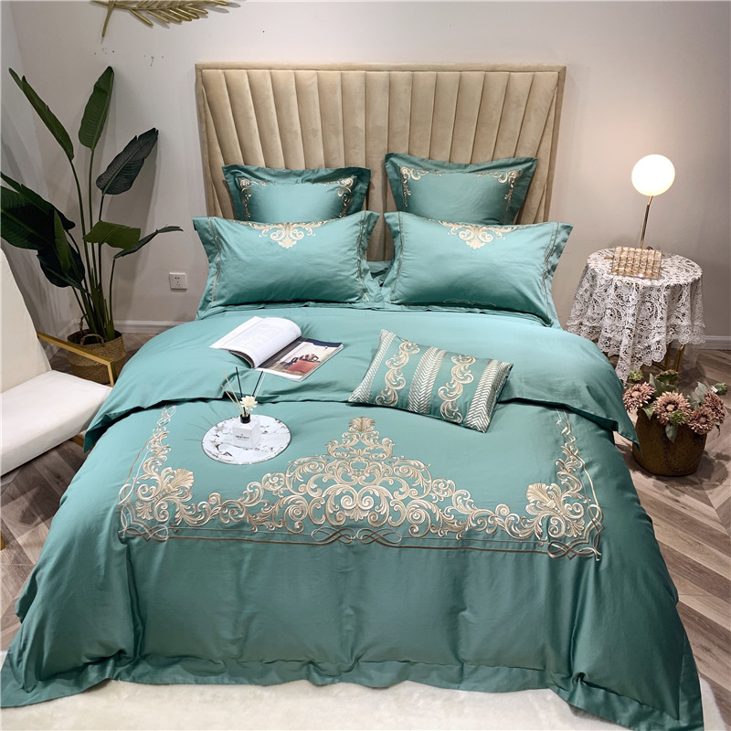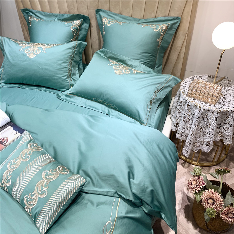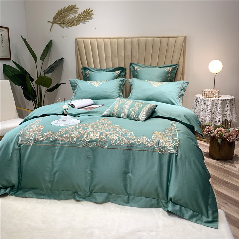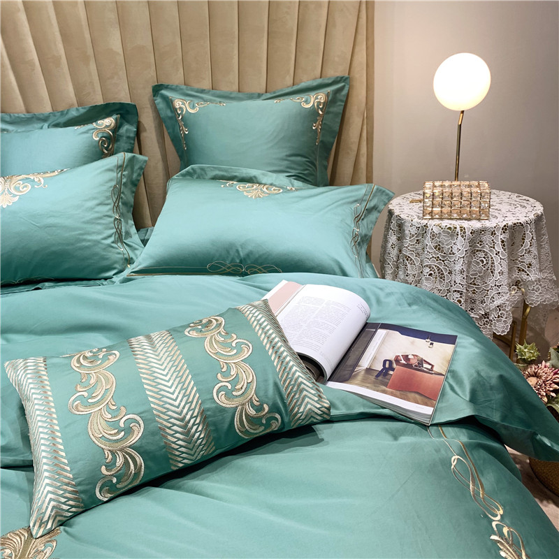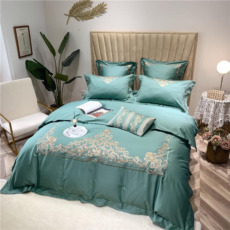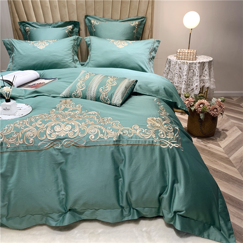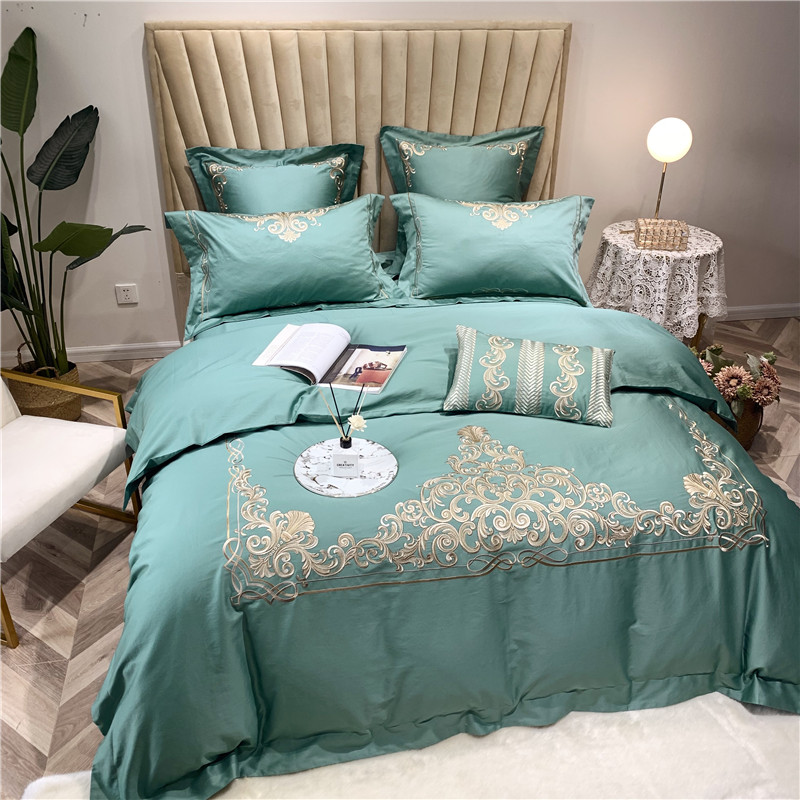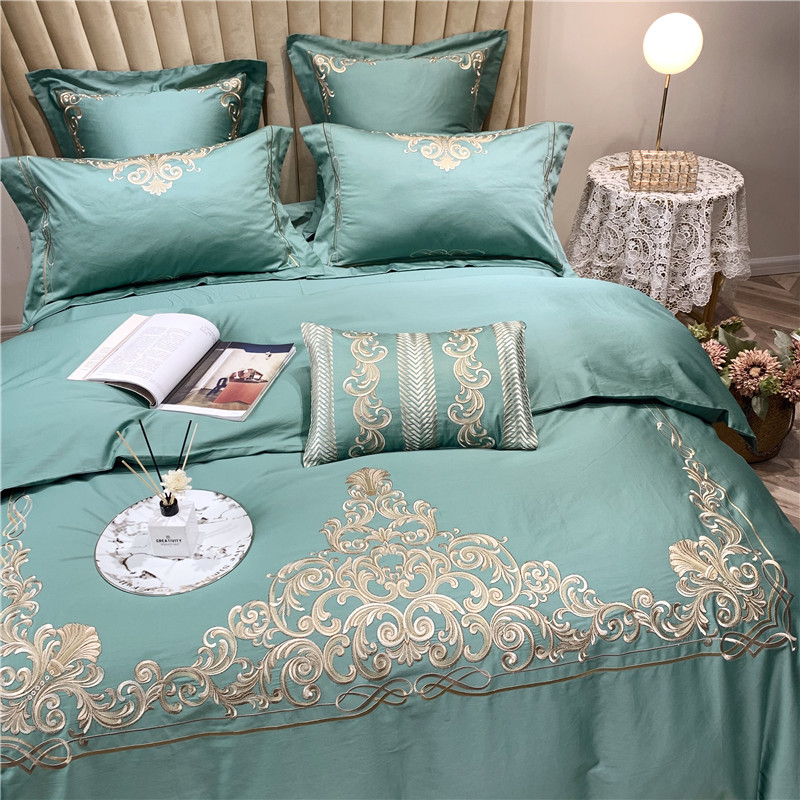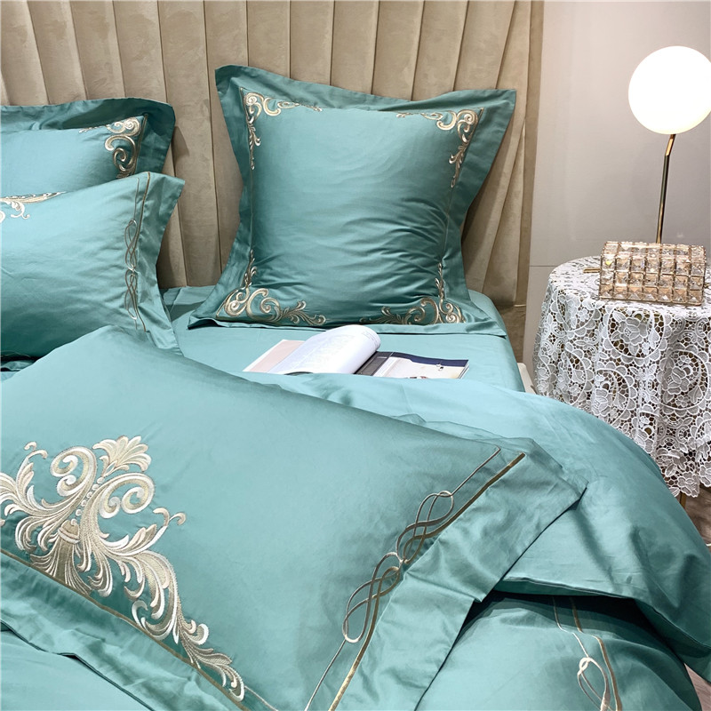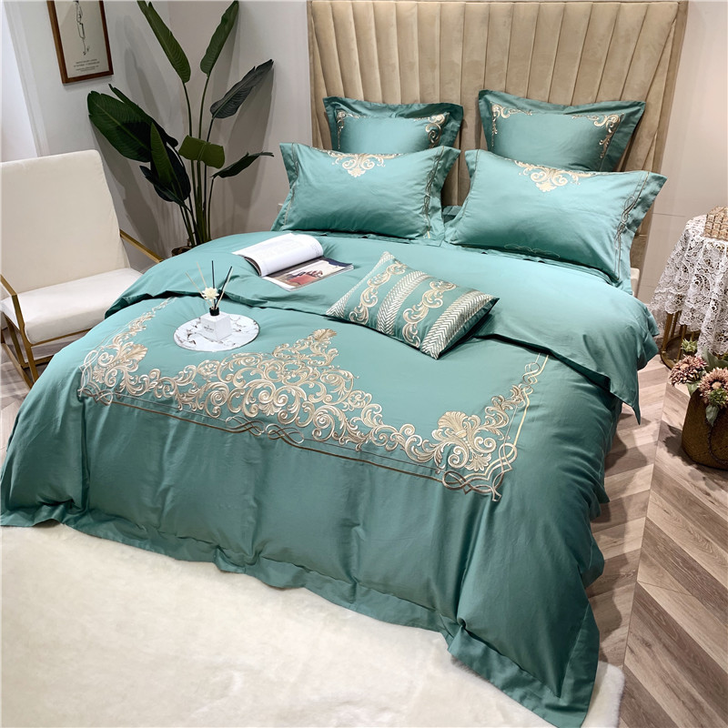 当前位置: 91家纺网 > 商品网购 > 床品套件 > 四件套 > 长绒棉四件套 > 馨蕊家居 2021新款60长绒棉绣花四件套 卢浮时尚-雅绿