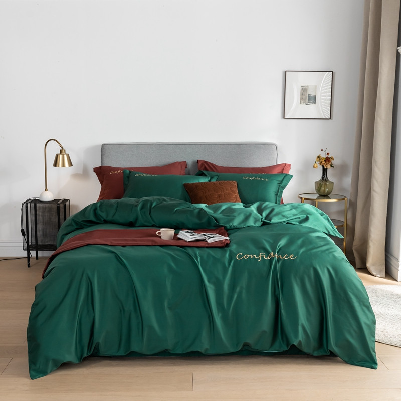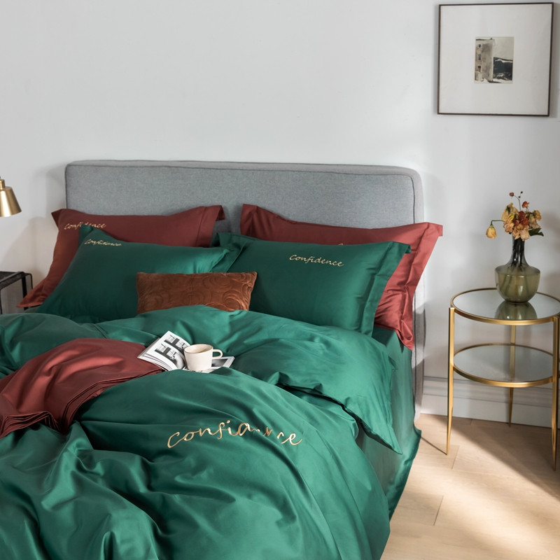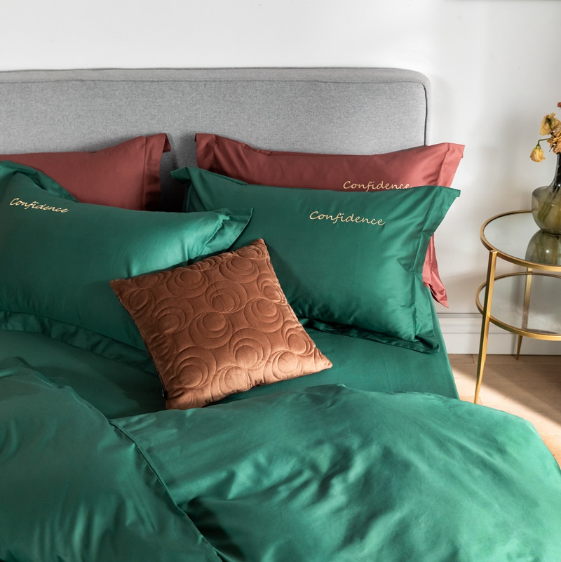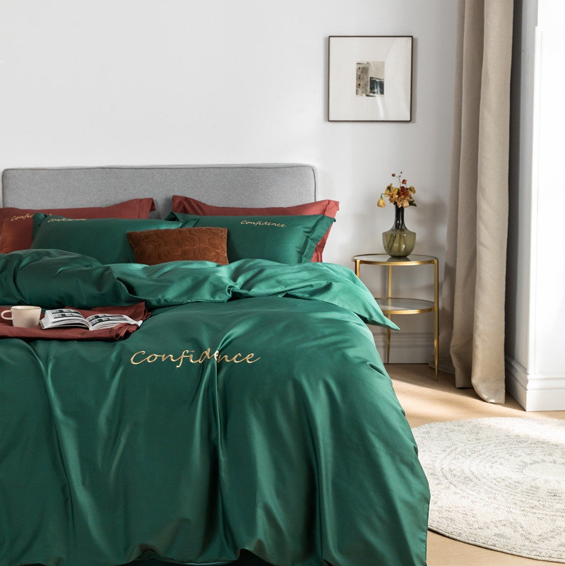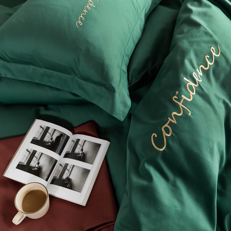 商品名称:柚子家纺 100支贡缎澳棉绣花四件套图二 拾色墨绿