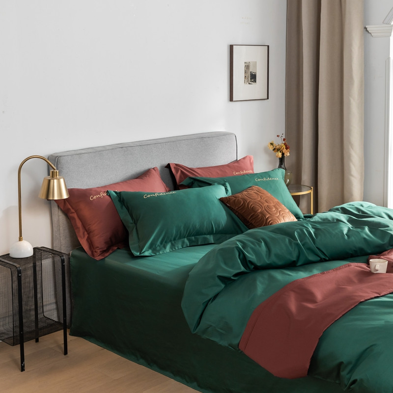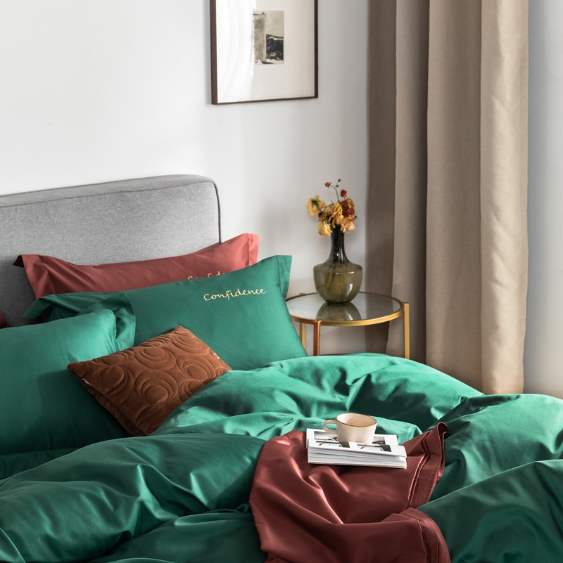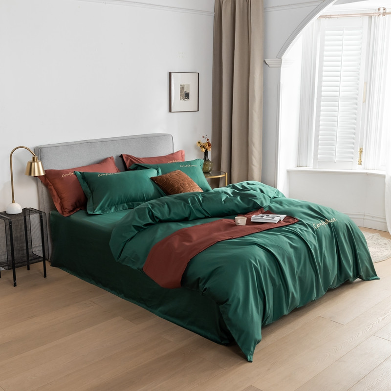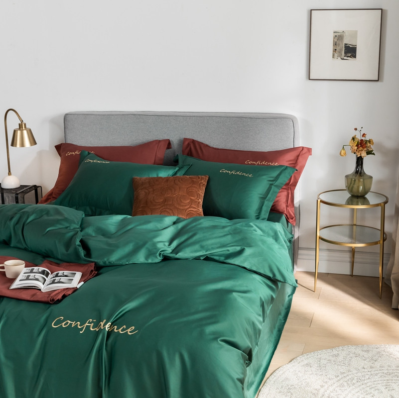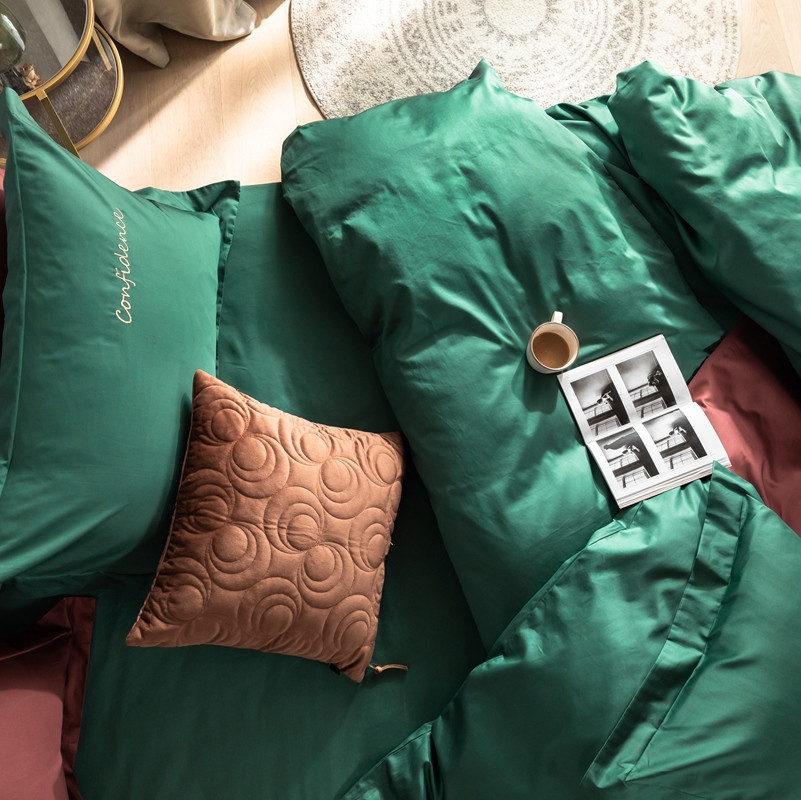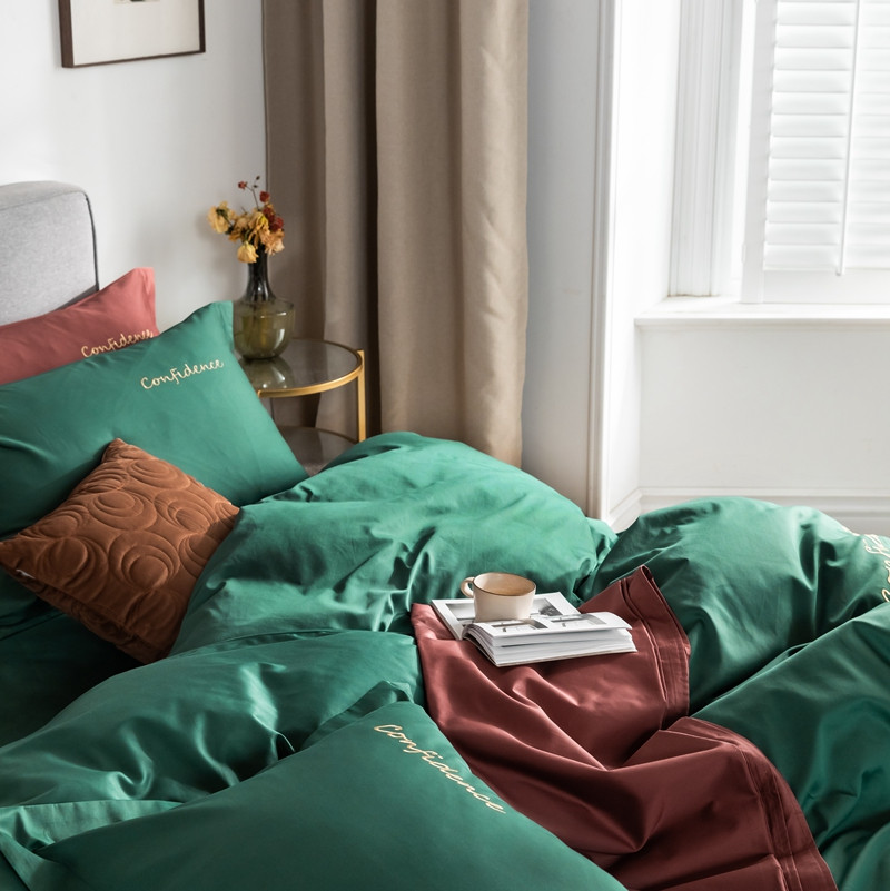 商品名称:柚子家纺 100支贡缎澳棉绣花四件套图二 拾色墨绿