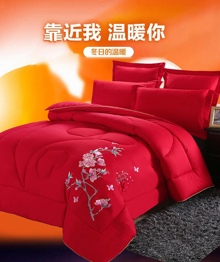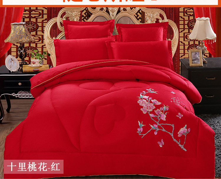 玉雅家纺 2025新款全棉婚庆刺绣舒适被婚庆被全棉被 十里桃花-红