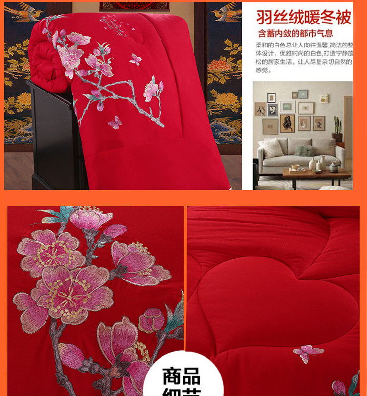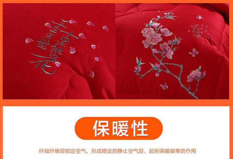 商品名称:玉雅家纺 2025新款全棉婚庆刺绣舒适被婚庆被全棉被 十里桃花-红