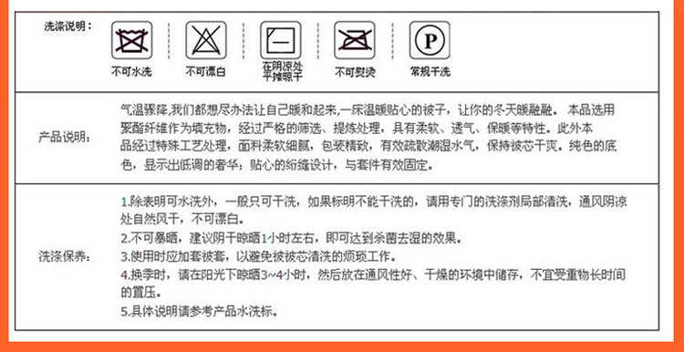 3、通州区市场监督局友情提醒,近期涉及到床上用品不褪色不掉毛不缩水的投诉和以世界知名品牌图案为面料的床品举报较多。请各商家自检自查,对照整改或进行下架处理。