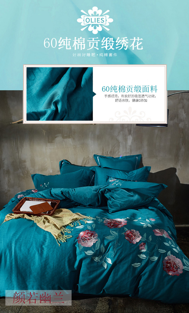 当前位置: 91家纺网 > 商品网购 > 床品套件 > 四件套 > 全棉普通四件套 > 玉雅家纺 2025新款全棉提花加绣花四件套多件套 颜若幽兰