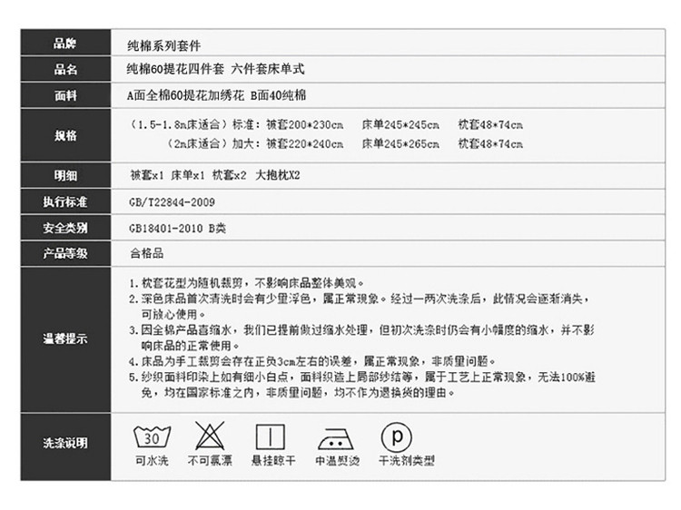 1.8m(6英尺)床六件套 | ¥270.00 |