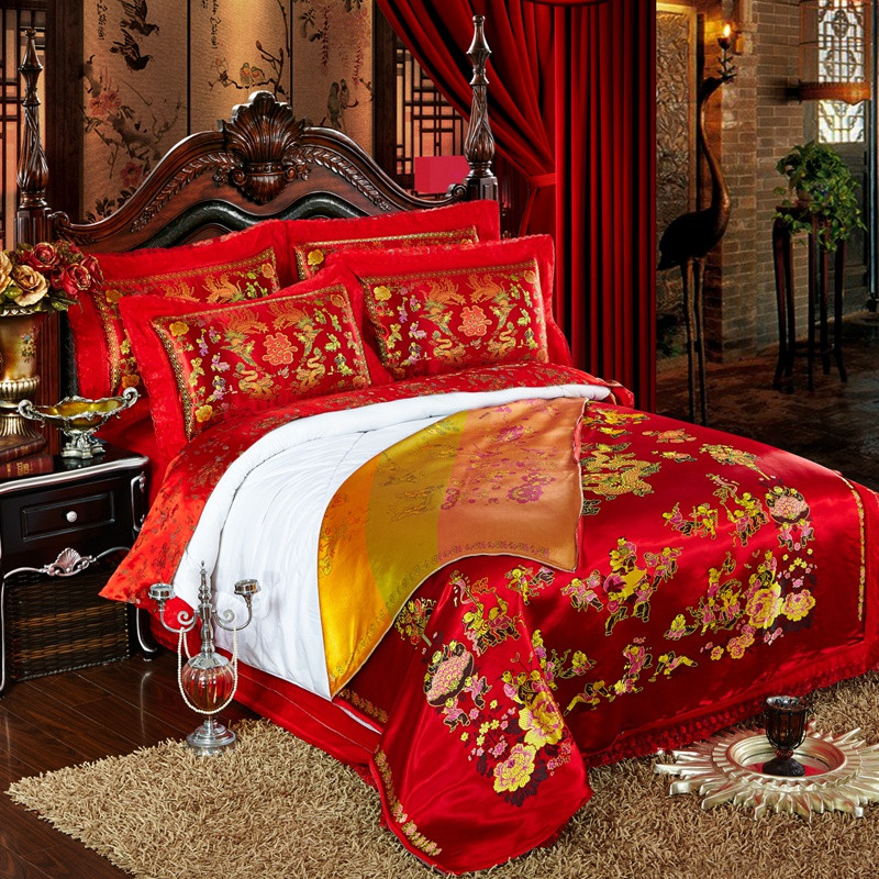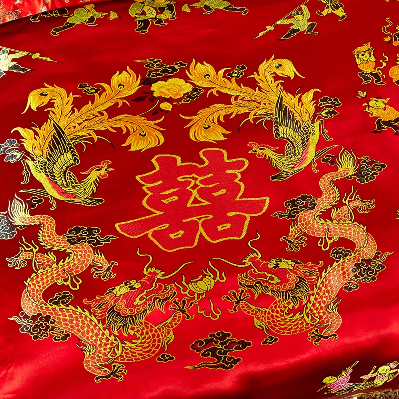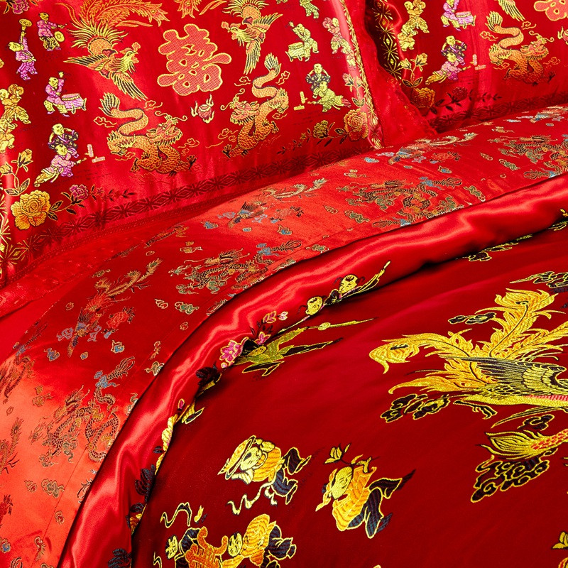 商品名称:欣喜来 2020新款绸缎婚庆脱卸款四件套 龙凤百子-红