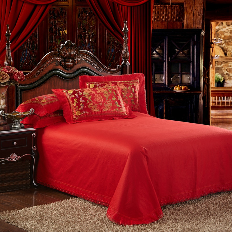 欣喜来 2022新款全棉纯色四件套 大红,大红