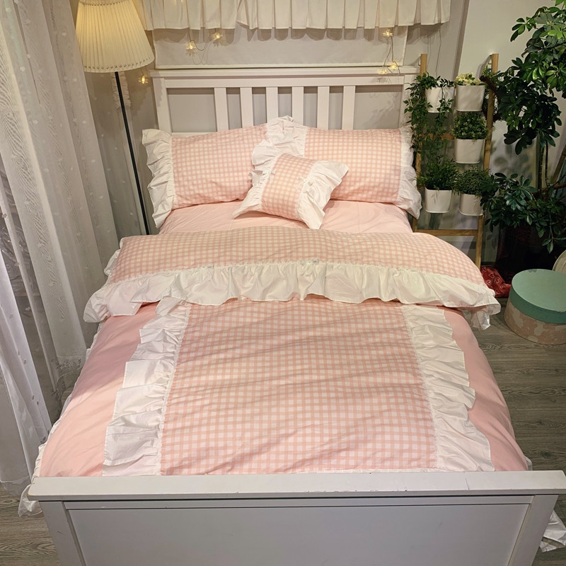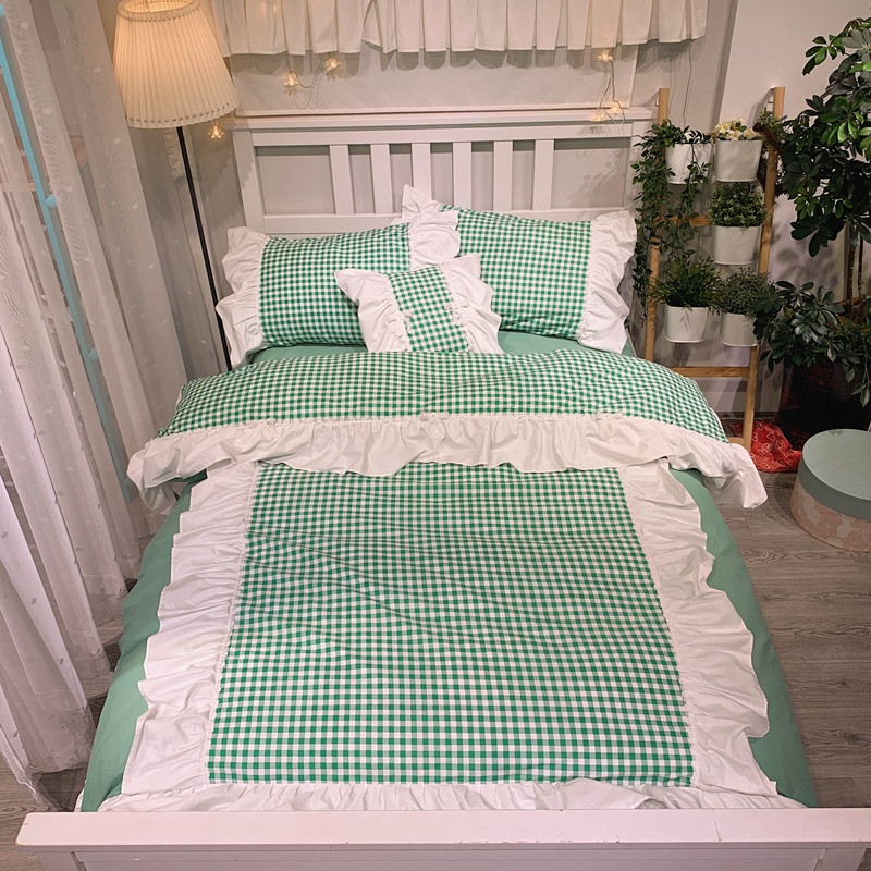 (总)嗨购 2022新款40支水洗棉刺绣花边四件套-春日秋千,春日秋千-粉,春日秋千-绿