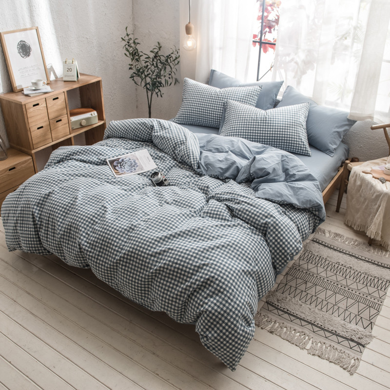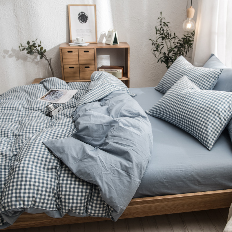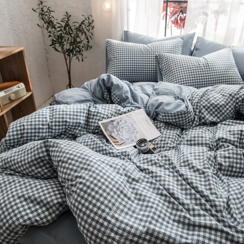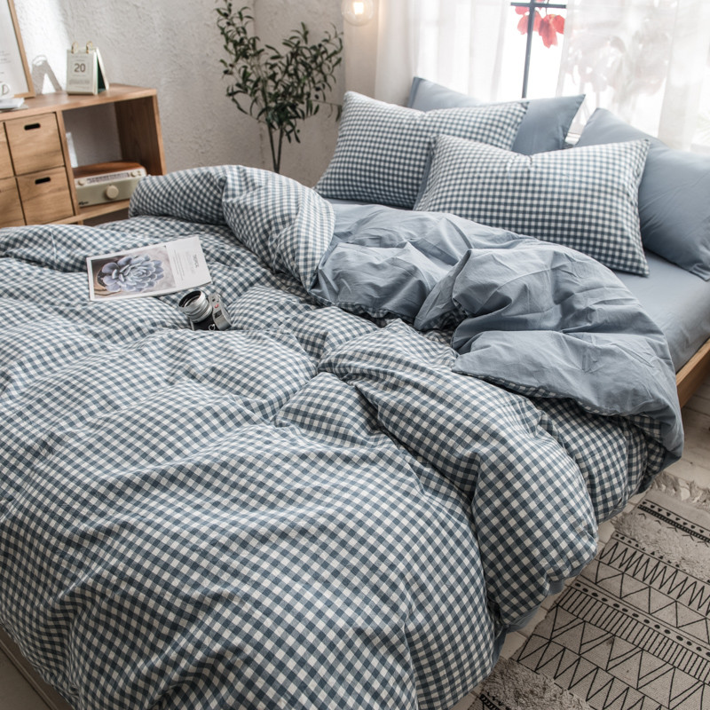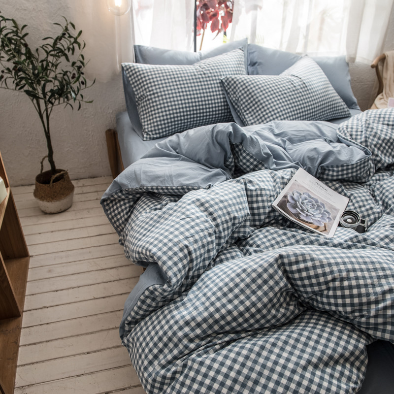 商品名称:佳梦达 2020新款色织全棉水洗双拼单被套 浅蓝小格