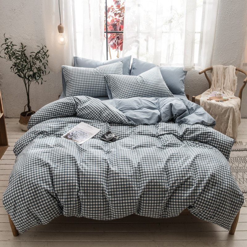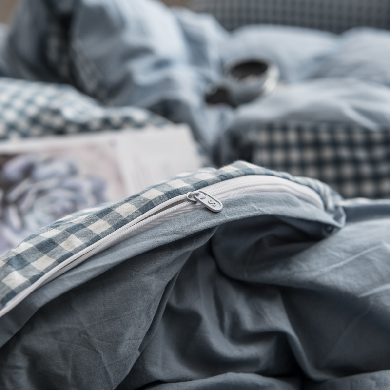 佳梦达 2020新款色织全棉水洗双拼单被套 浅蓝小格
