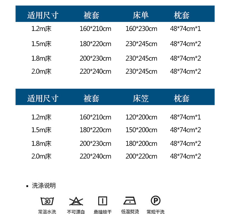 床单/床笠尺寸