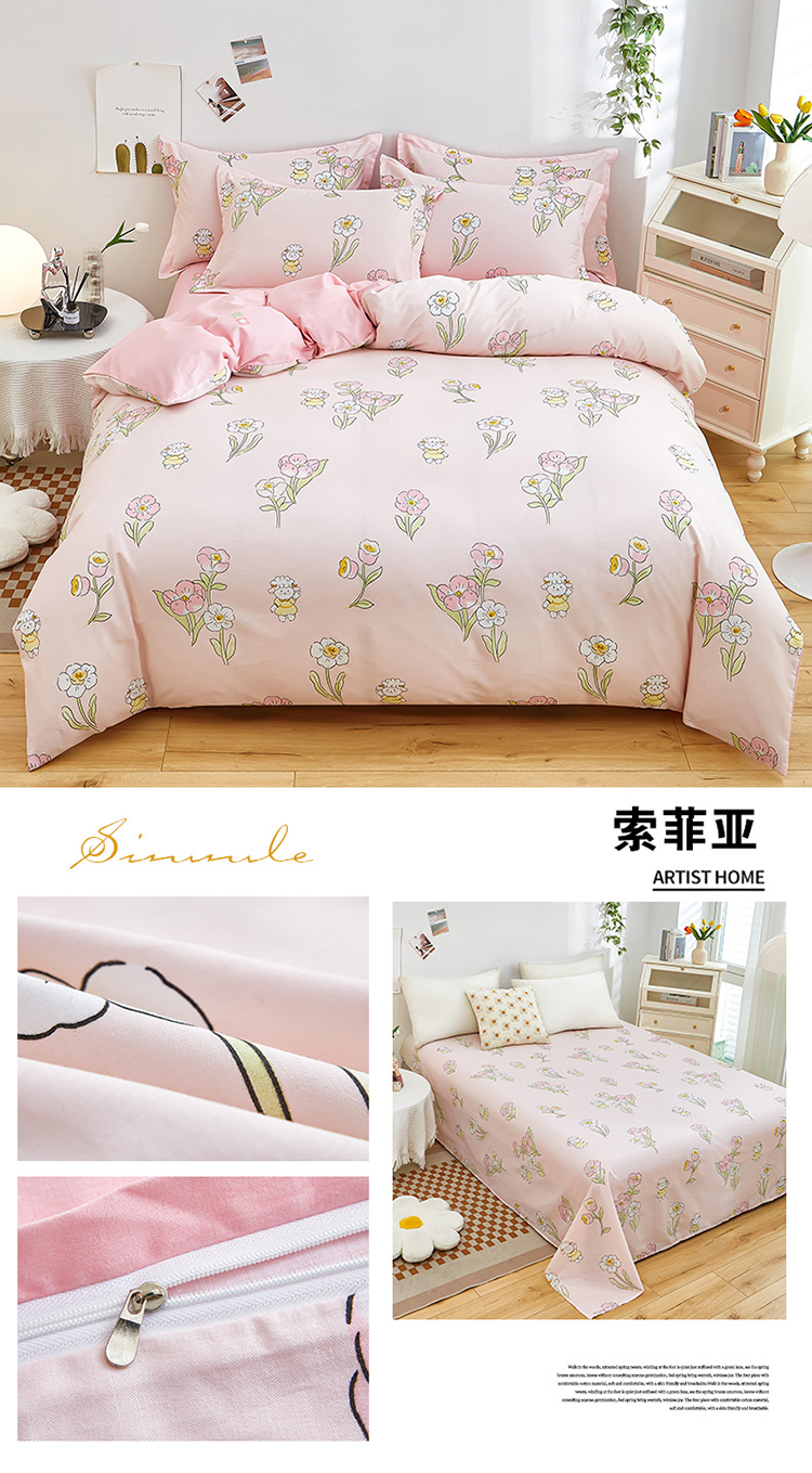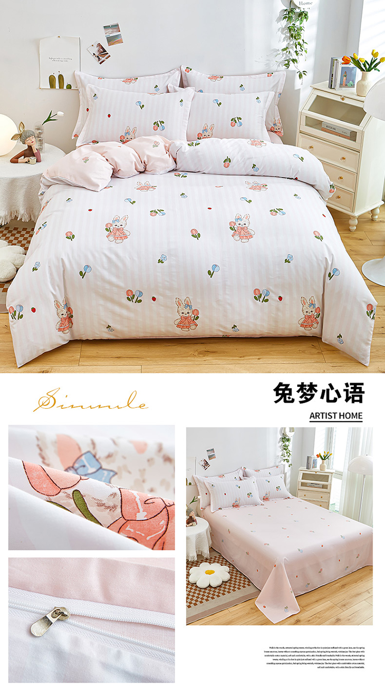 (总)卓越家纺 2025夏季新款莫代尔四件套,风尚之约(灰),叹花郁,亚塞,樱桃兔,玉立,绽放