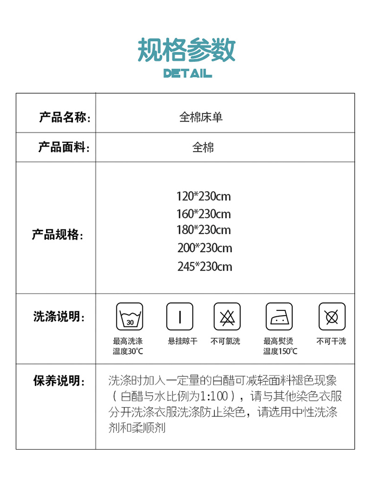 商品名称:(总1)卓越 工厂直营新款128*68全棉印花斜纹单床单