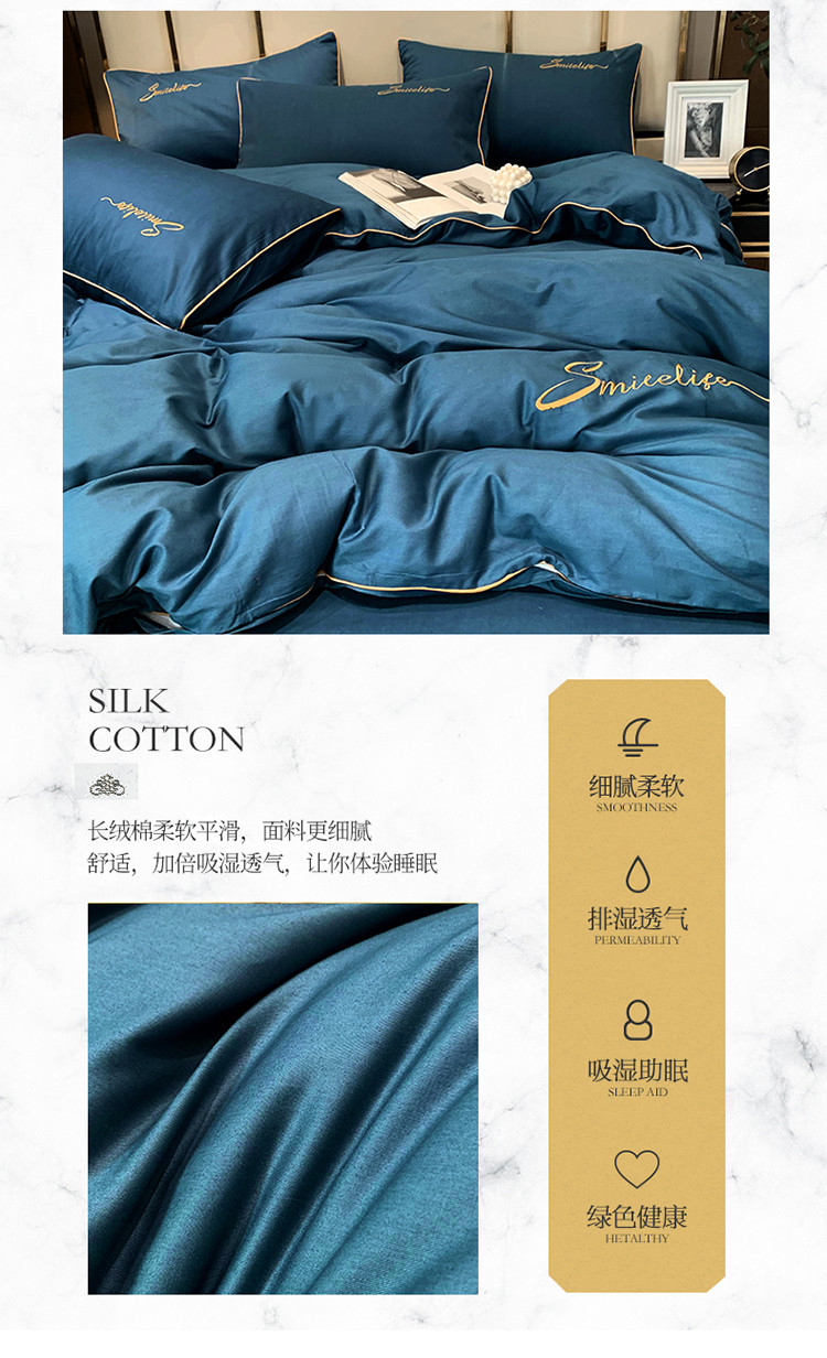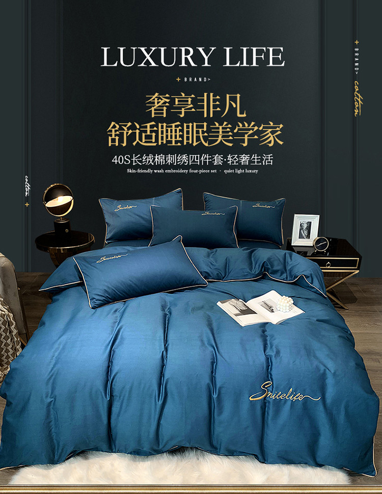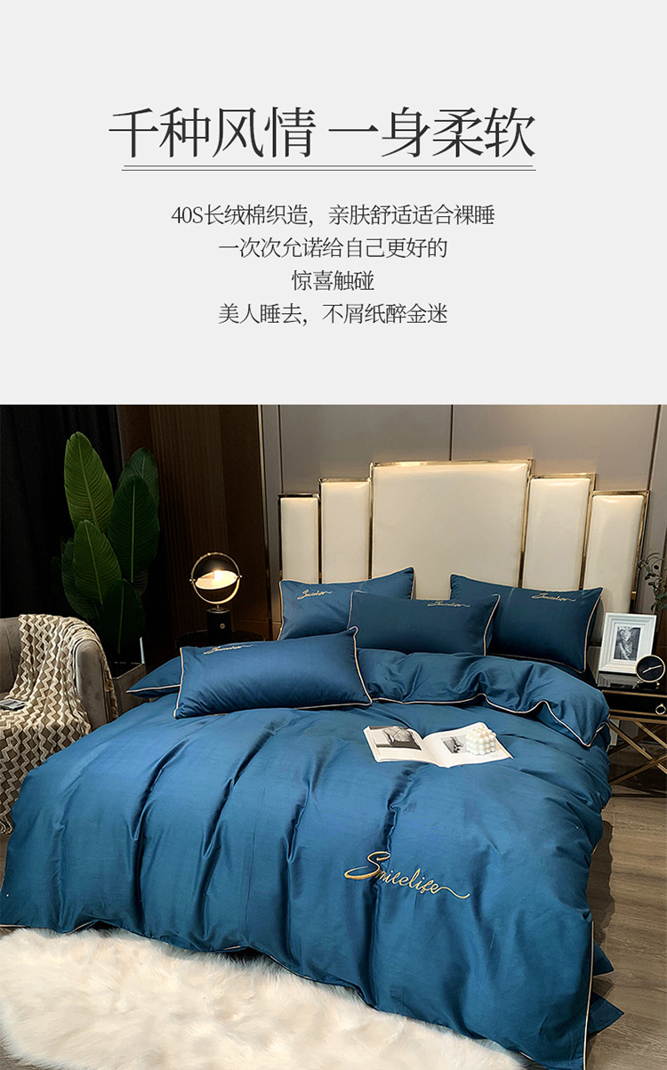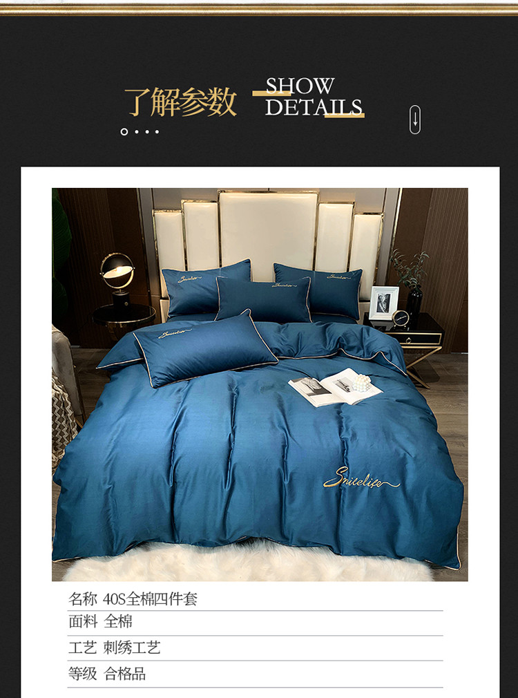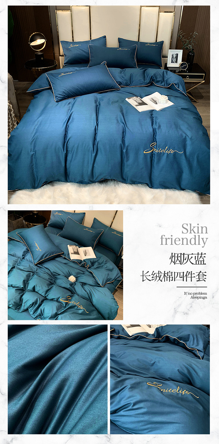 当前位置: 91家纺网 > 商品网购 > 床品套件 > 四件套 > 贡缎全棉四件套 > 艾佳2025新款款全棉40贡缎纯色刺绣轻奢风系列四件套烟灰蓝