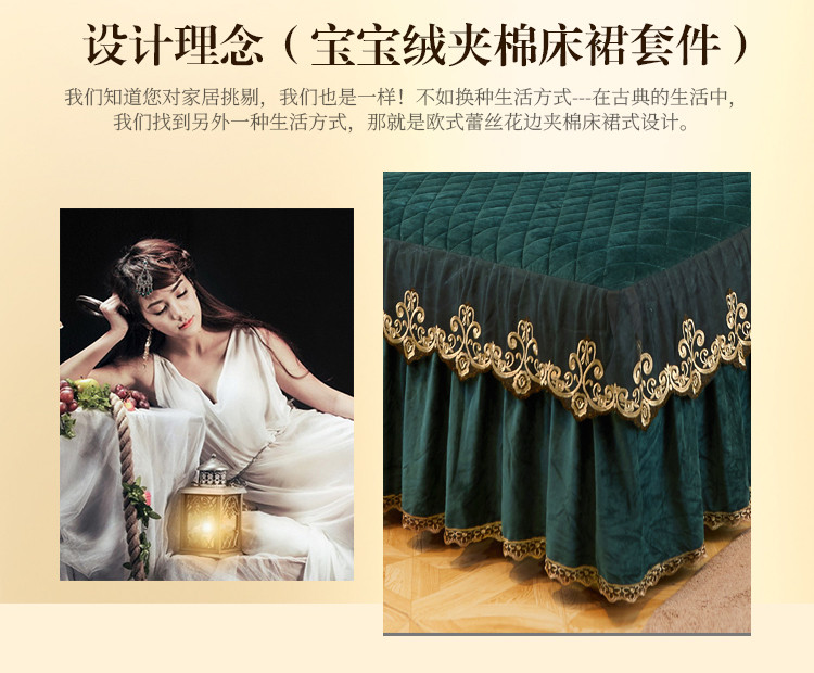 商品名称:星尚2020新款宝宝绒夹棉单床裙水晶绒法莱绒婴儿绒 墨绿