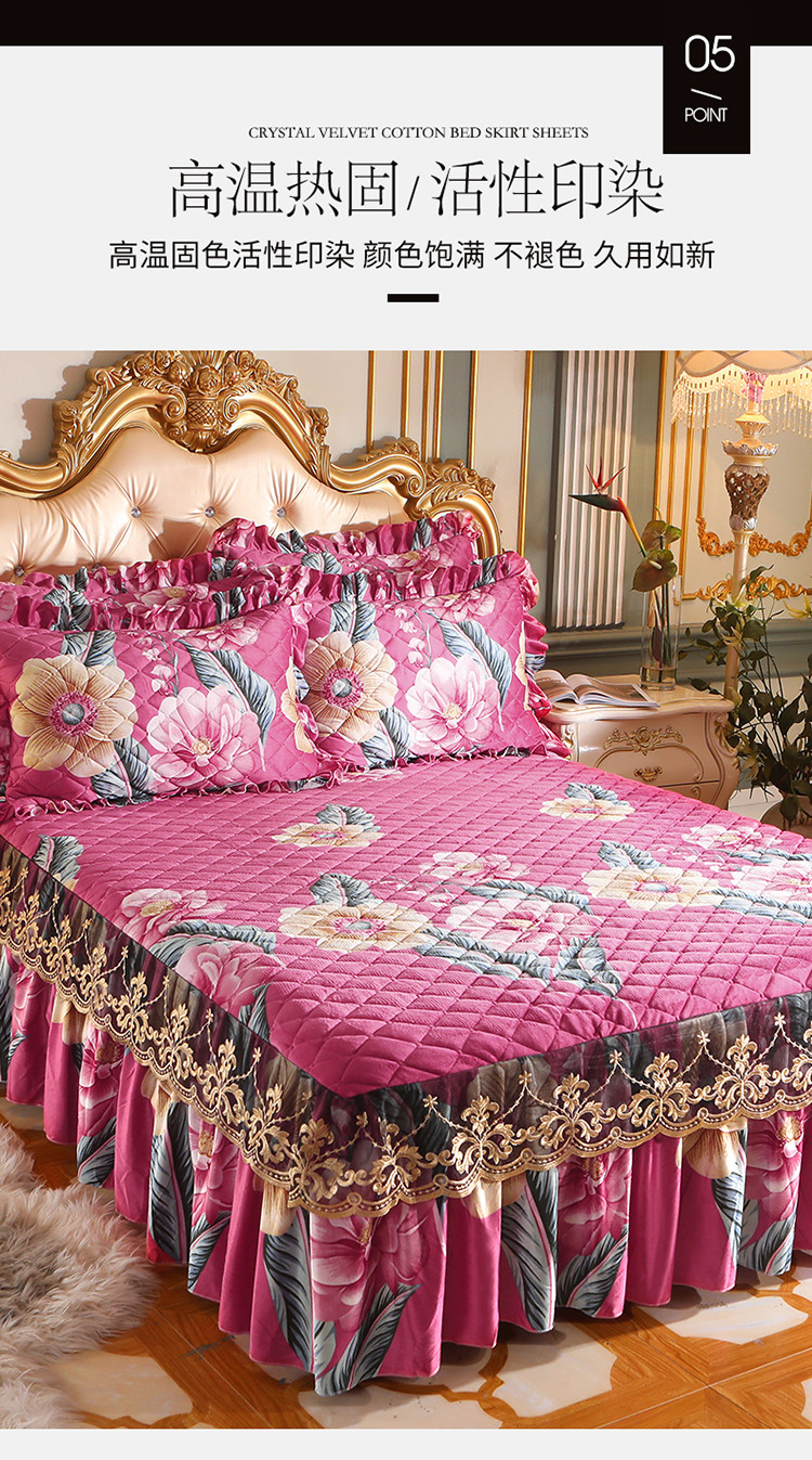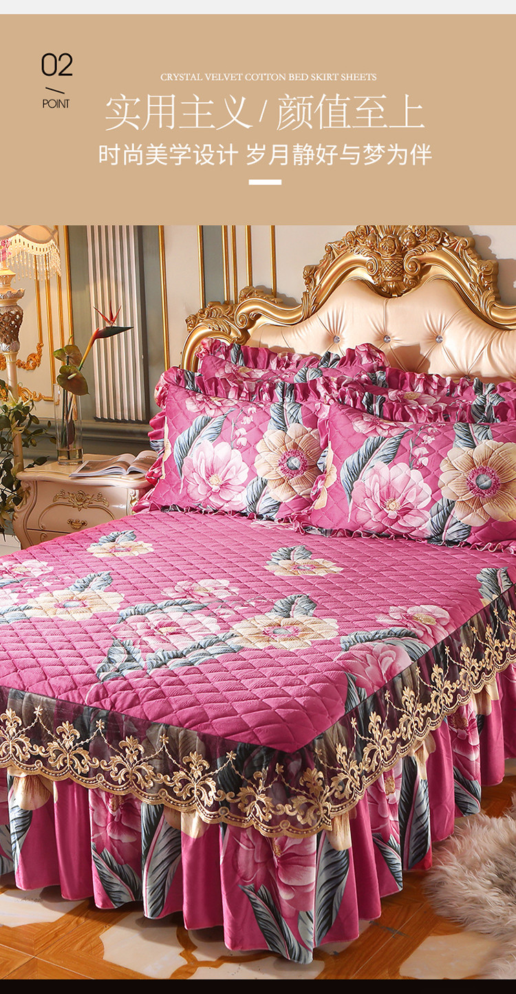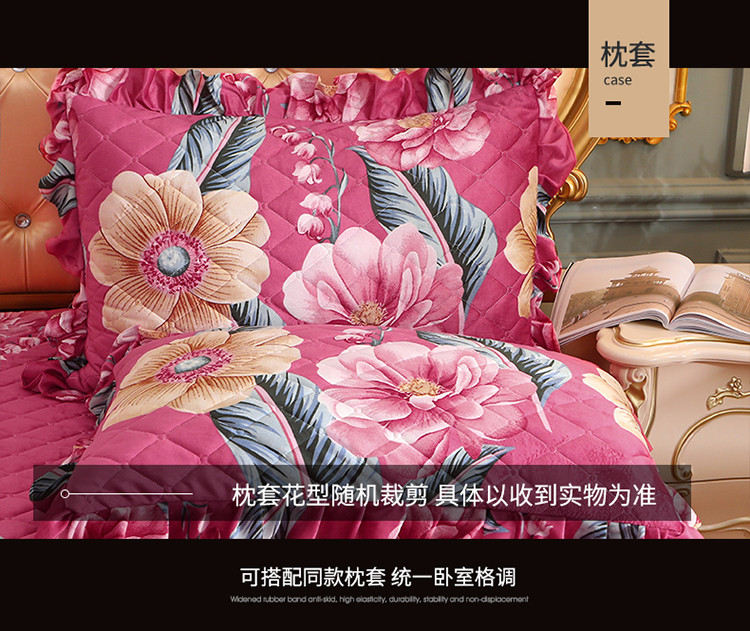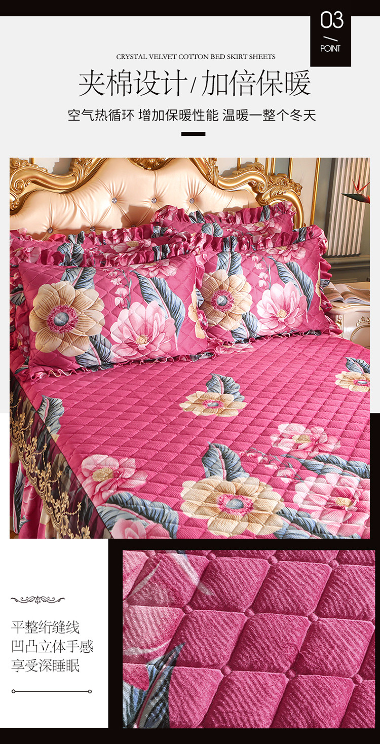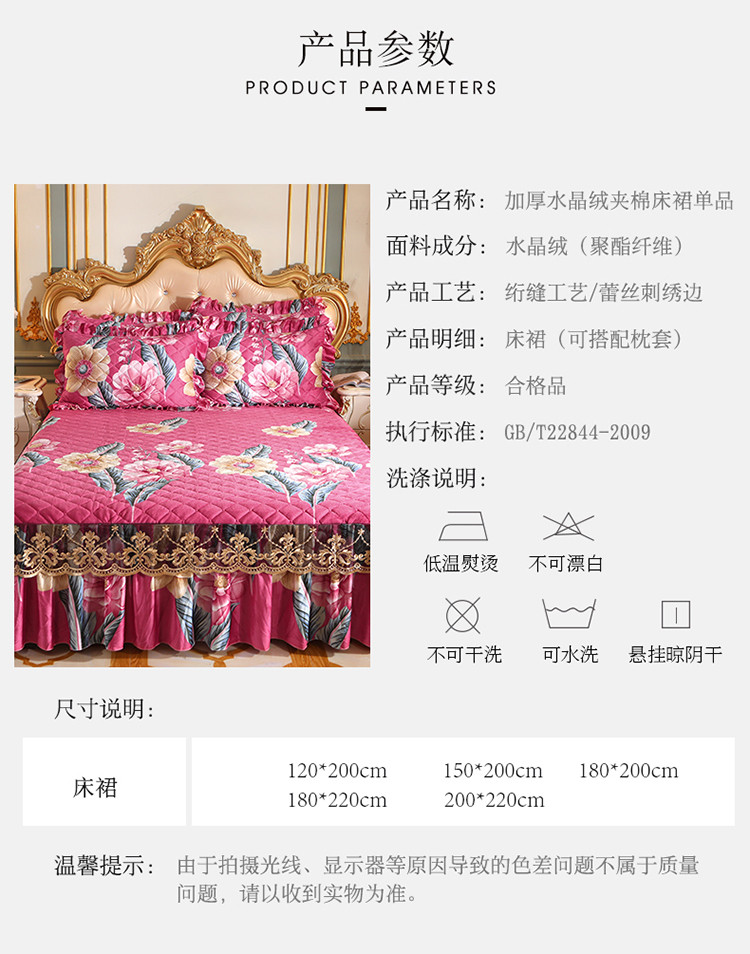 商品名称:宜凡家纺 2021新款夹棉水晶绒单品床裙 花花世界
