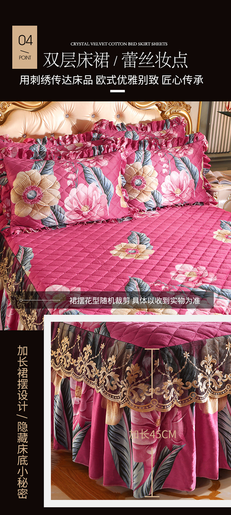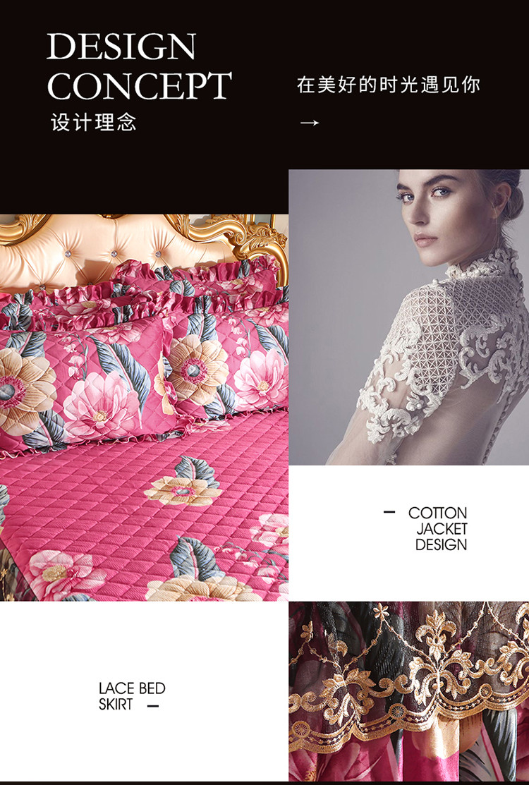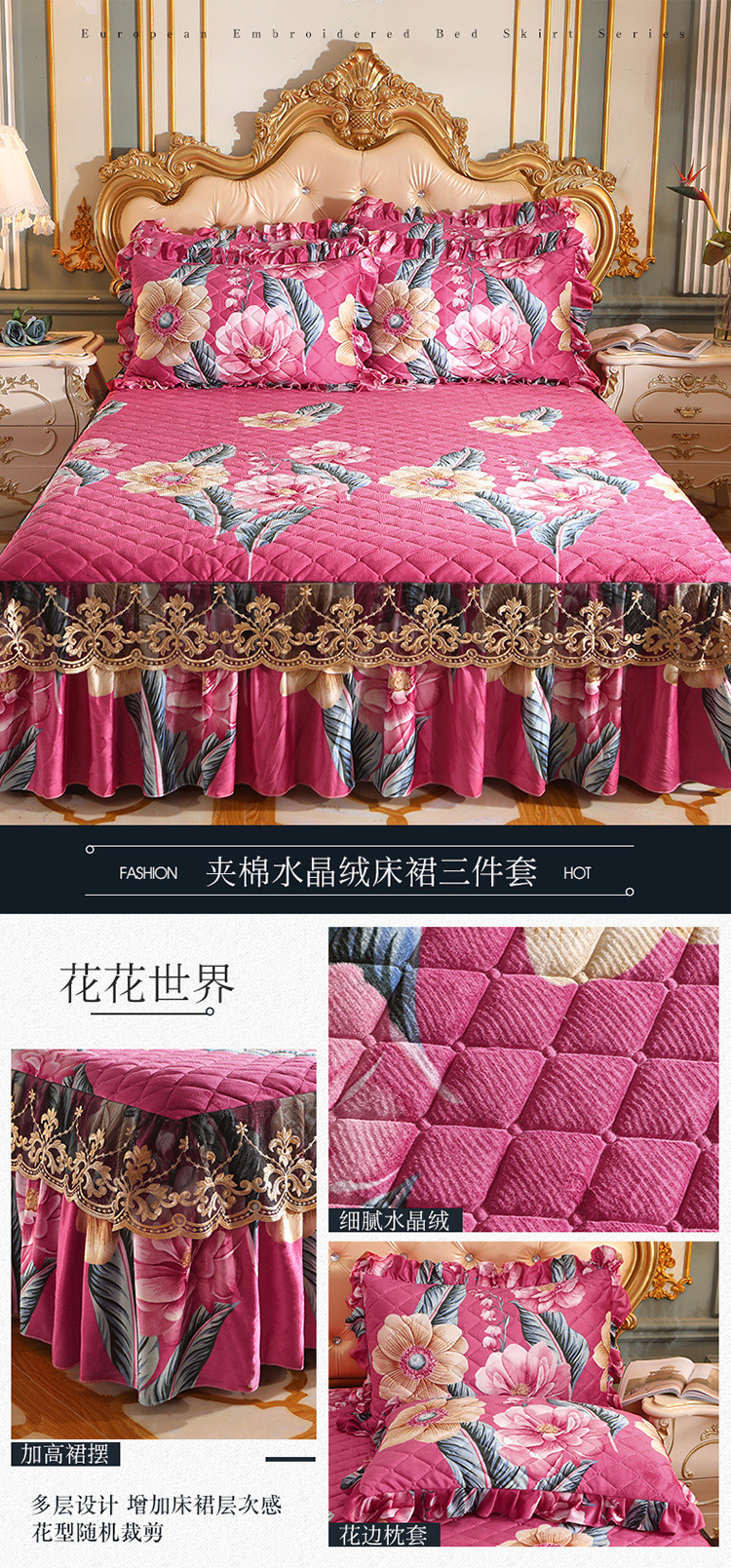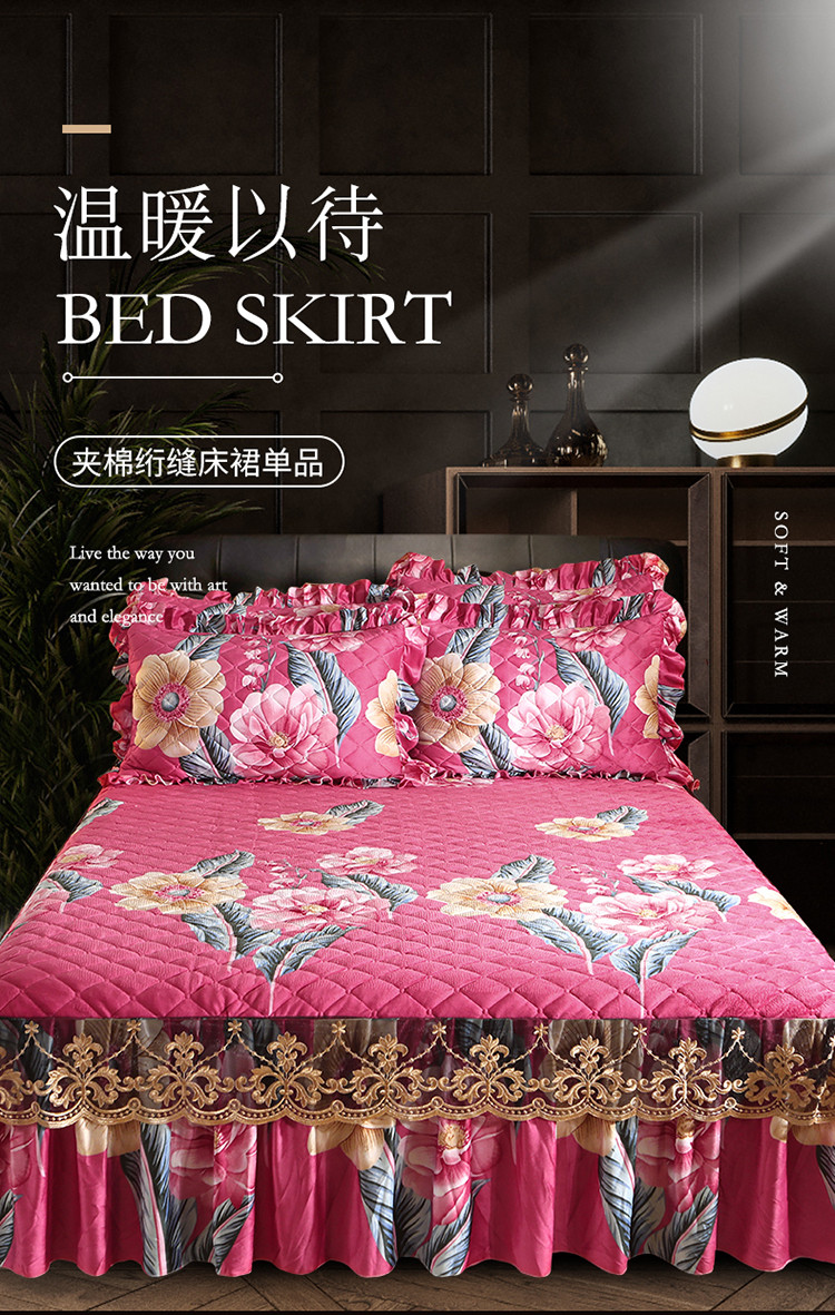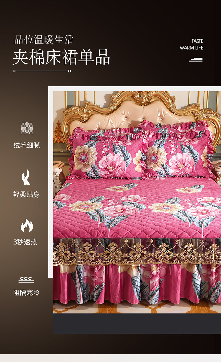 商品名称:宜凡家纺 2021新款夹棉水晶绒单品床裙 花花世界